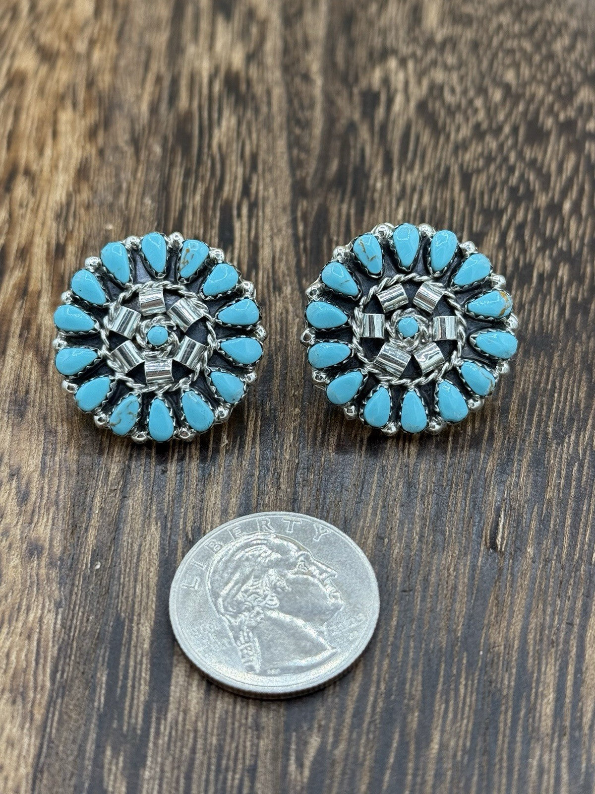 Native American Navajo Handmade Sterling Silver Turquoise Cluster Post earrings
