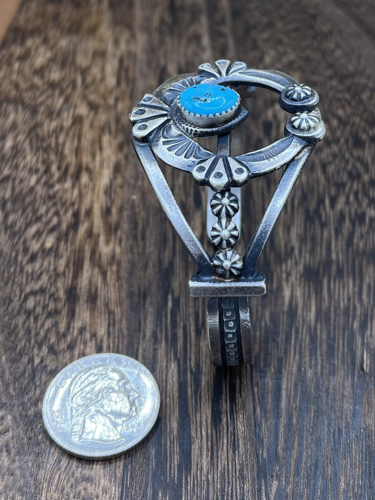 Native American Silver Navajo Handmade Kingman Turquoise Old look Naja Bracelet