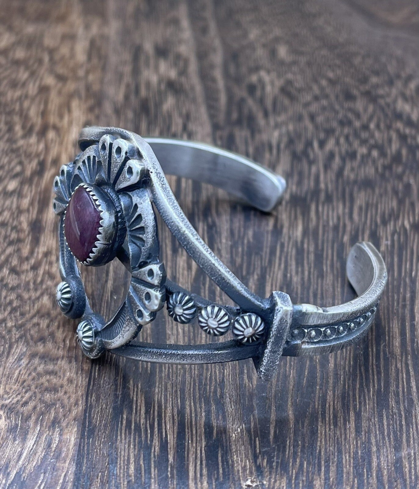 Native American Silver Navajo Handmade Purple Spiny Oyster Old look Bracelet