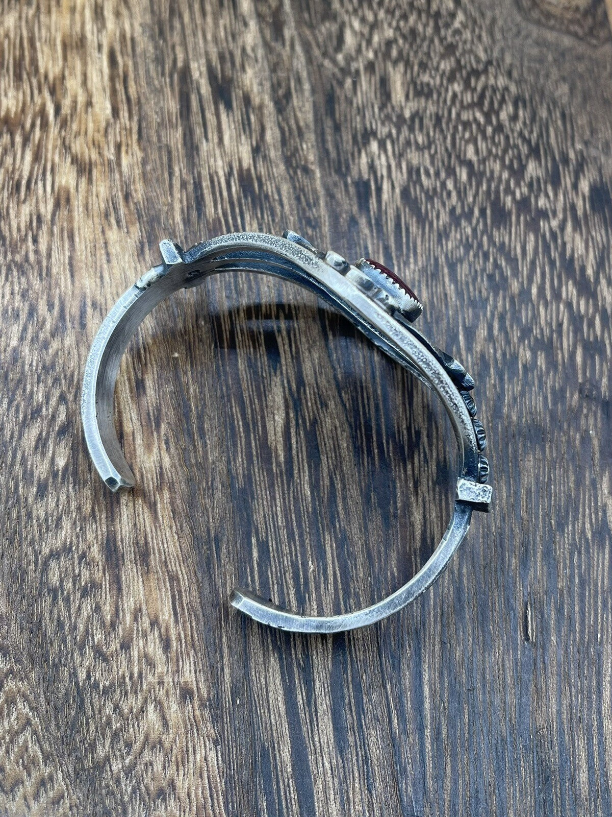 This stunning bracelet is a piece of Native American artistry at its finest. Handmade by Kevin Billah, this sterling silver cuff features a beautiful Purple spiny oyster shell stone set in bezel. The bracelet has a unique Naja shape and is perfect for any occasion, from Mother's Day to weddings and graduations.