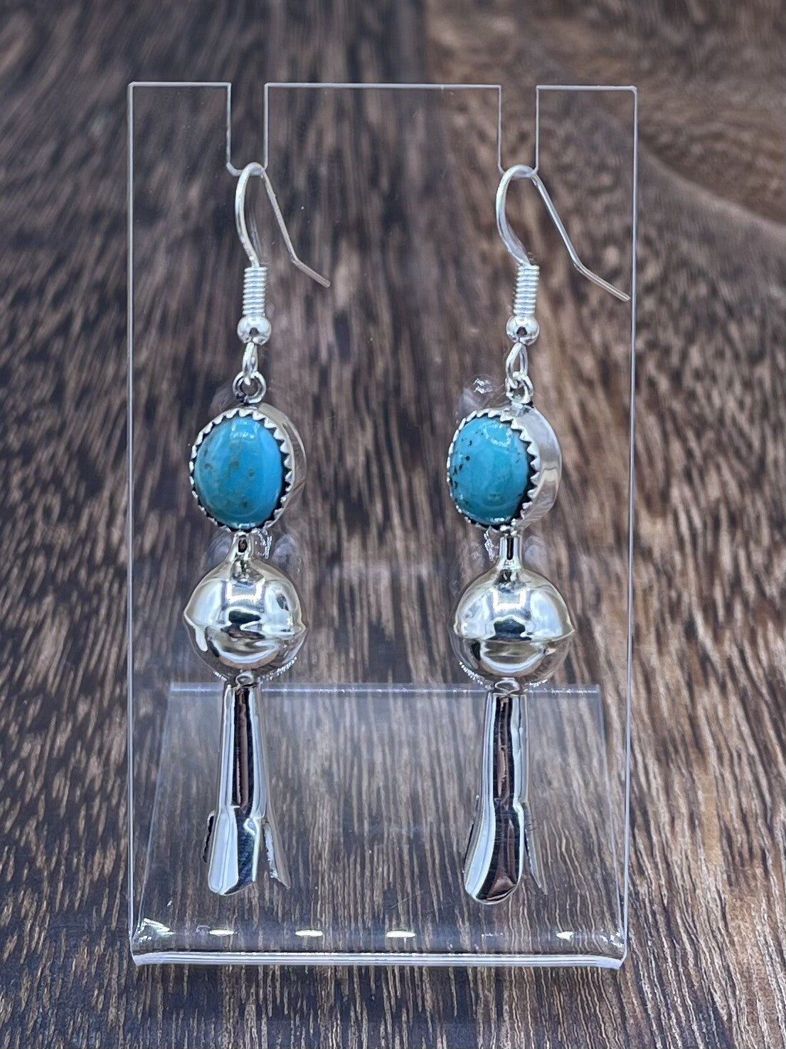 Native American Silver Navajo Handmade Turquoise Dangle Blossom Earrings shiny