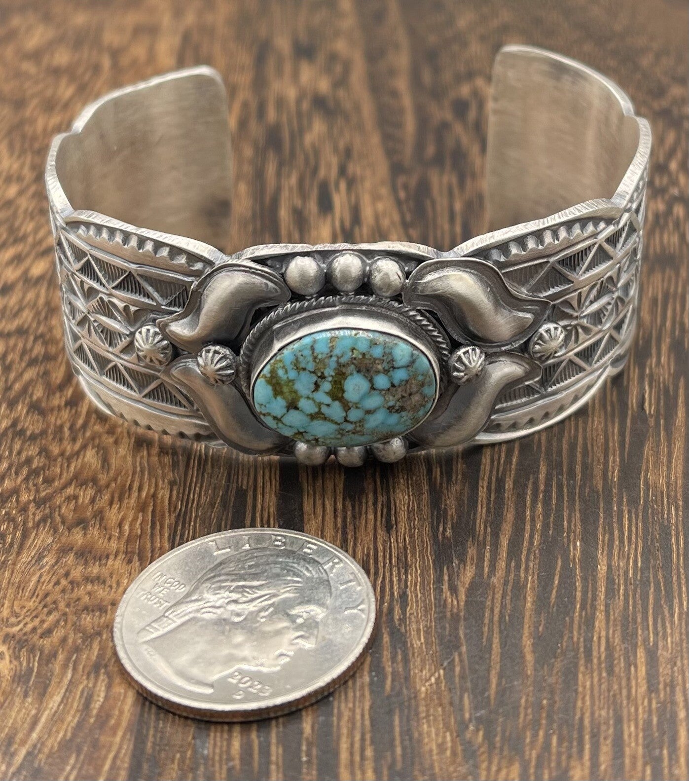 Native American Sterling Silver Navajo Handmade Kingman Turquoise Cuff Bracelet