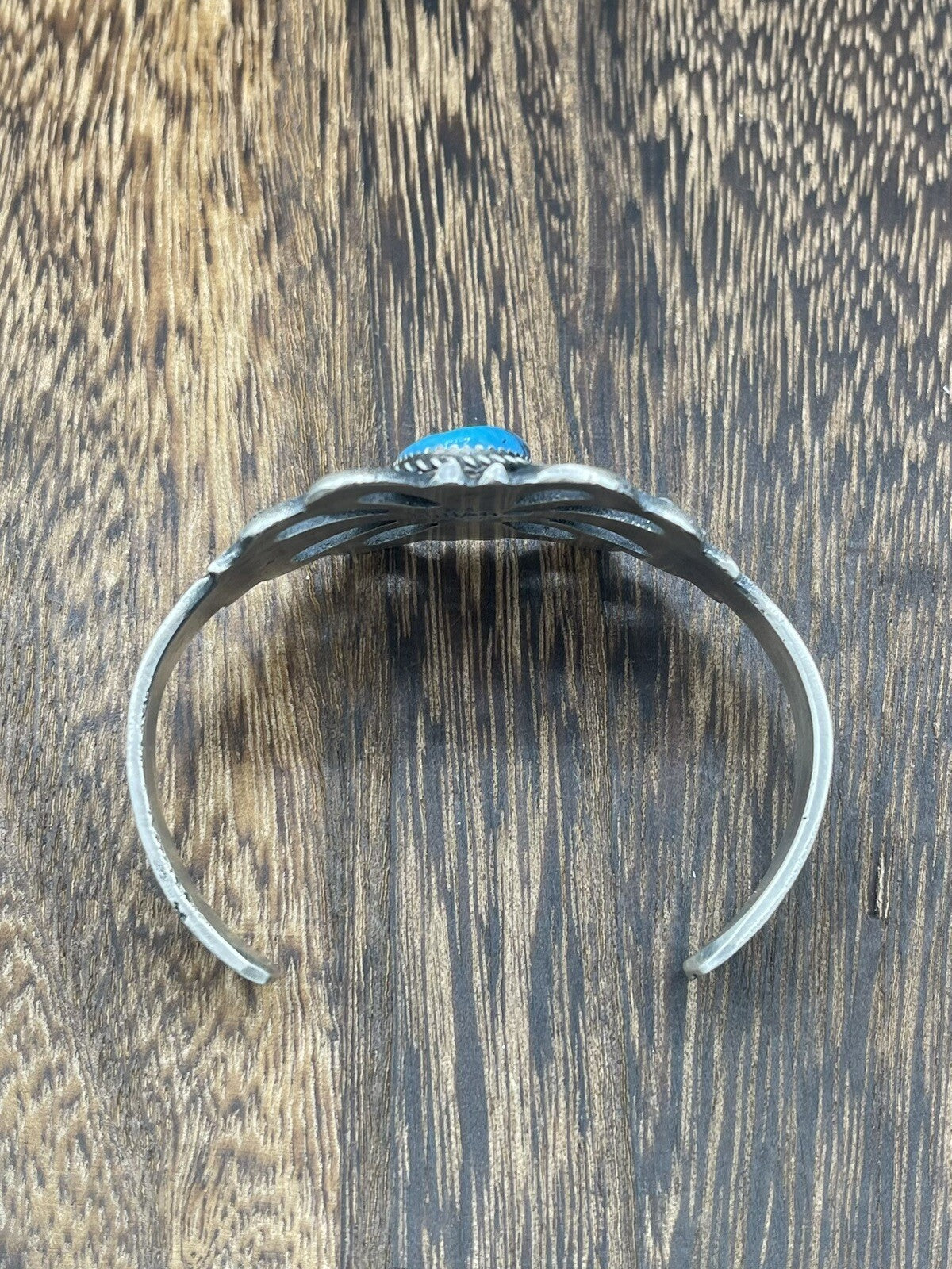 Native American Sterling Silver Navajo Handmade Kingman Turquoise Cuff Bracelet