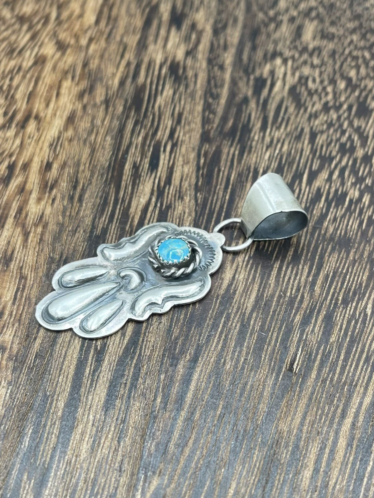 Native American Sterling Silver Navajo Handmade Kingman Turquoise Pendant old look
