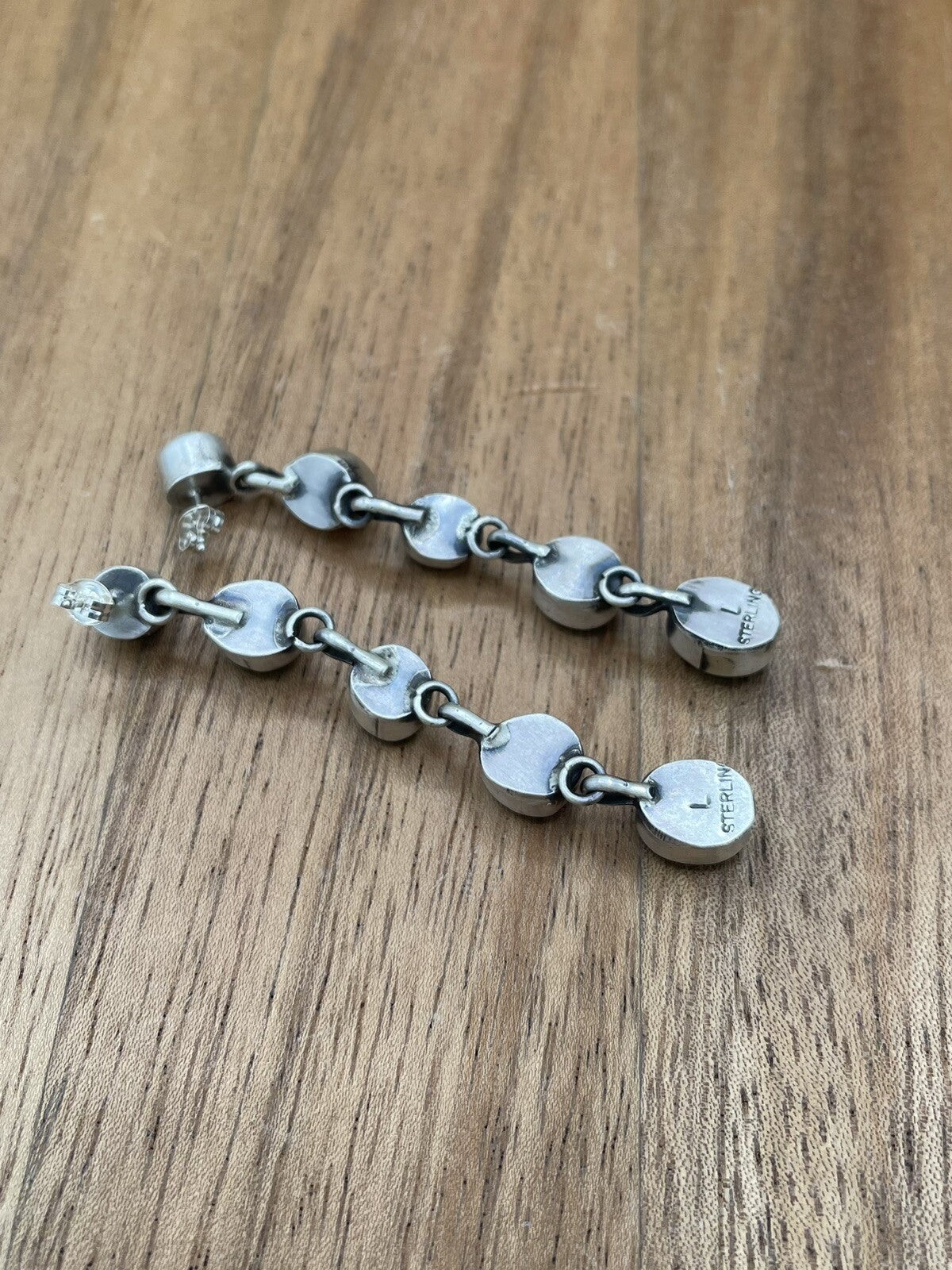 Native American Sterling Silver Navajo Handmade Turquoise Post Dangle Earrings