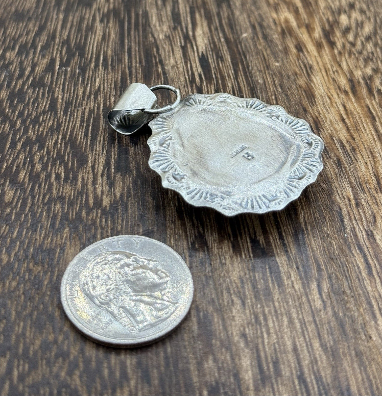 Native Navajo Handmade Sterling Silver Blue Bird Turquoise Stamped Drop Pendant