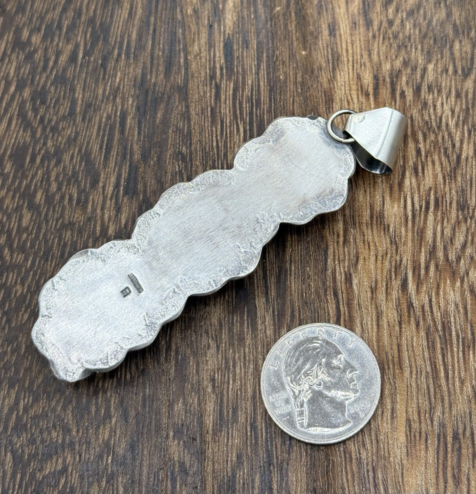 Native Navajo Handmade Sterling Silver Blue Bird Turquoise Stamped Drop Pendant