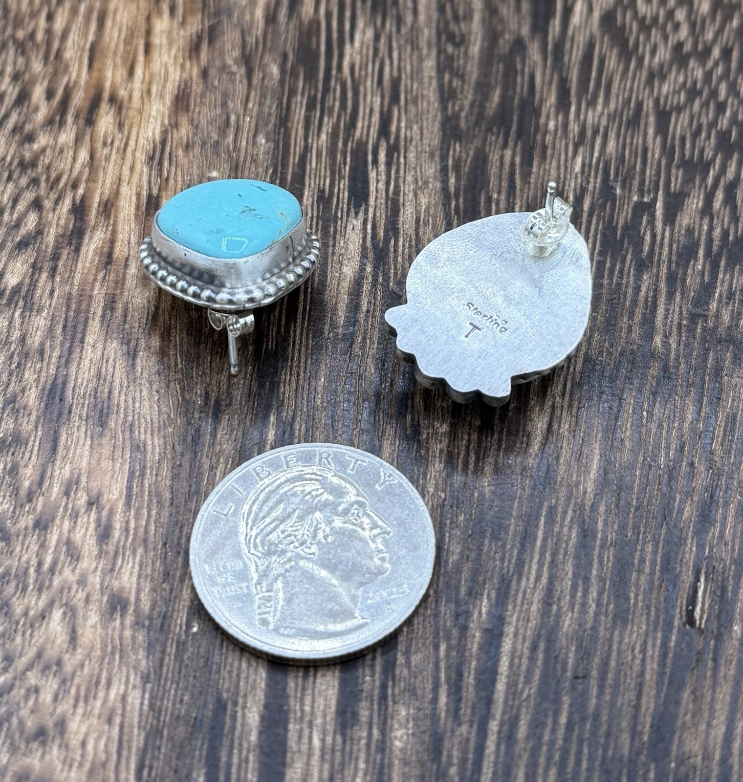 Native Navajo Handmade Sterling Silver Blue Glacier Turquoise Post Stud Earrings