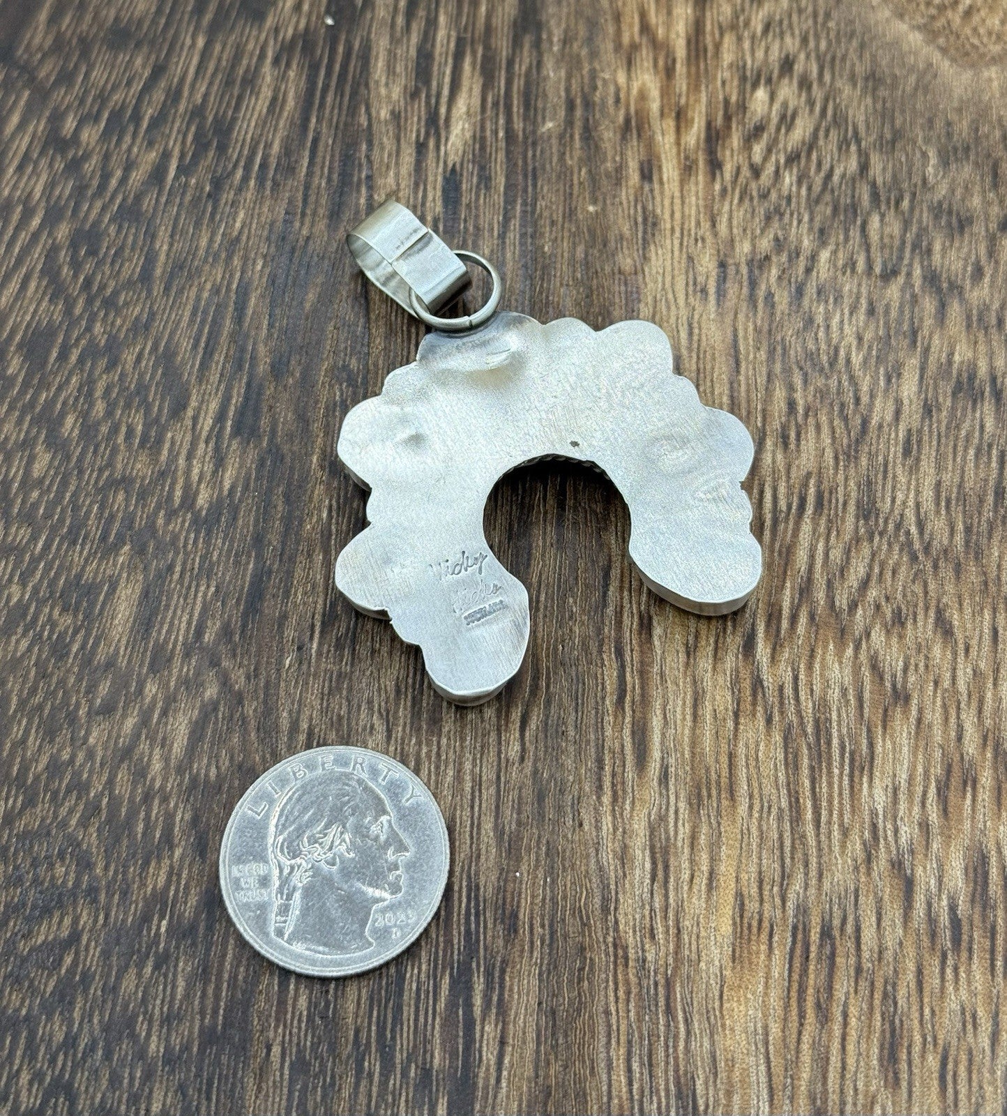 Elevate your jewelry collection with this exquisite Navajo handmade pendant. Crafted by Vicky Hicks, this stunning piece features a cluster of blue ridge stones , set in a sterling silver naja setting.
