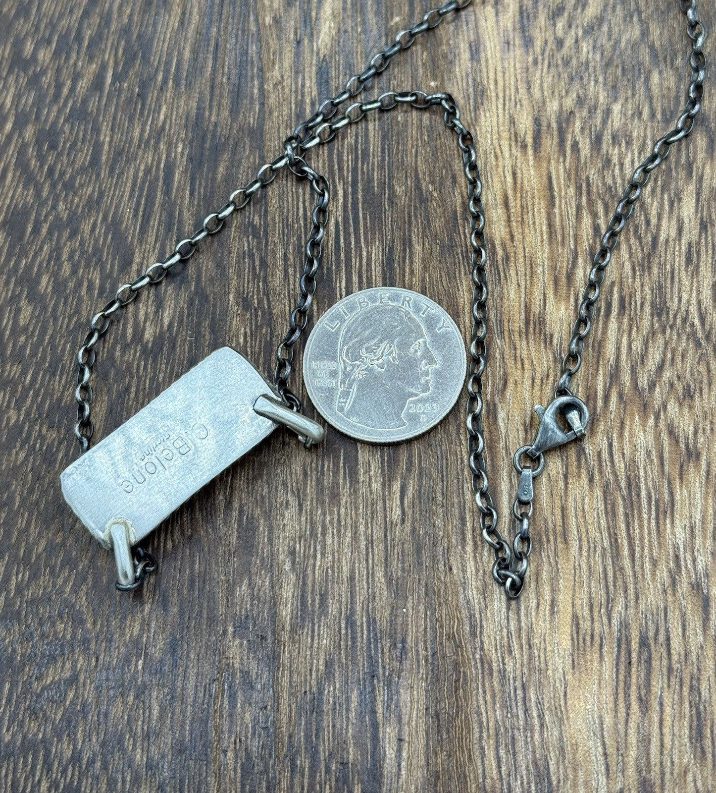 Native Navajo Handmade Sterling Silver Kingman Turquoise Bar Necklace 18”