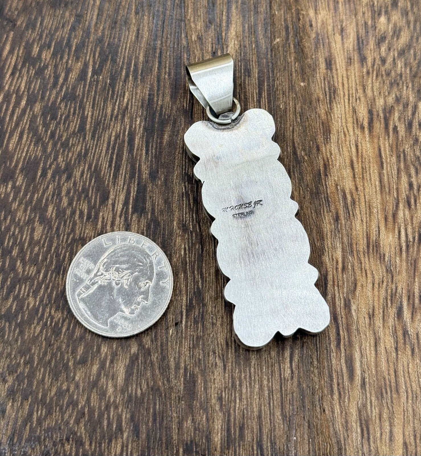 Elevate your jewelry collection with this exquisite Navajo handmade pendant. Crafted by Merle House Jr. , this stunning piece features a cluster of turquoise stones , set in a sterling silver bar setting.