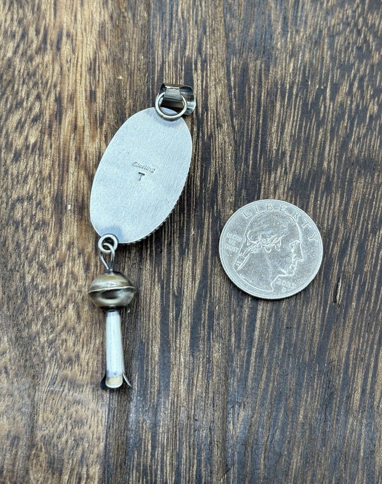 Native Navajo Handmade Sterling Silver Kingman Turquoise Dangle Blossom Pendant