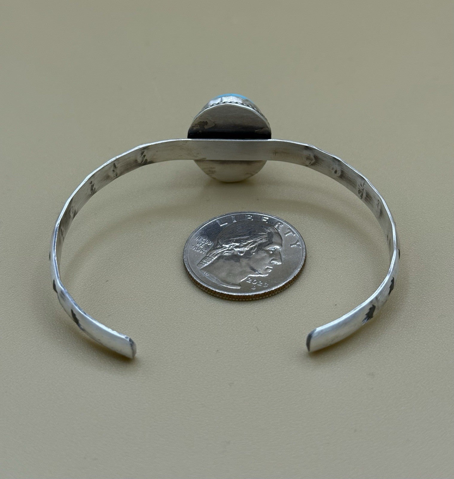 Native Navajo Handmade Sterling Silver Kingman Turquoise Stacker Cuff Bracelet
