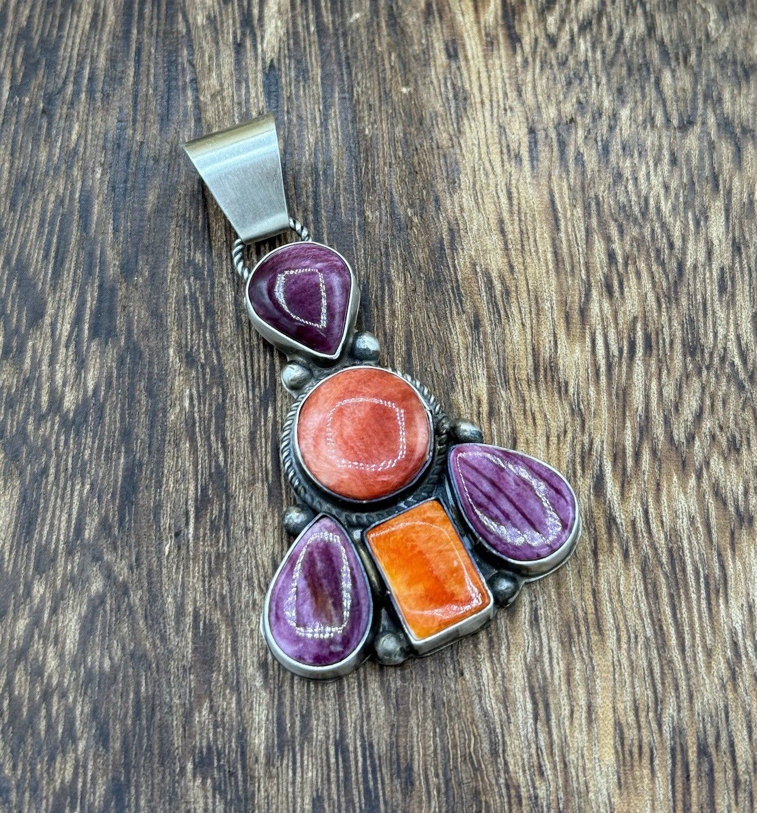 Native Navajo Handmade Sterling Silver Multi Spiny Oyster Shell Cluster Pendant
