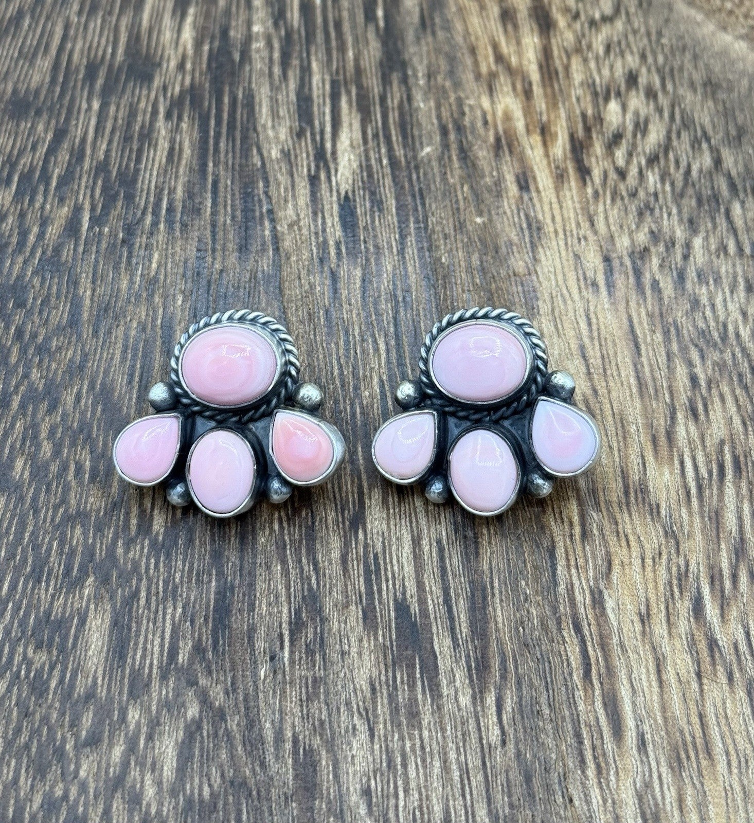 Native Navajo Handmade Sterling Silver Pink Conch Shell Cluster Earrings