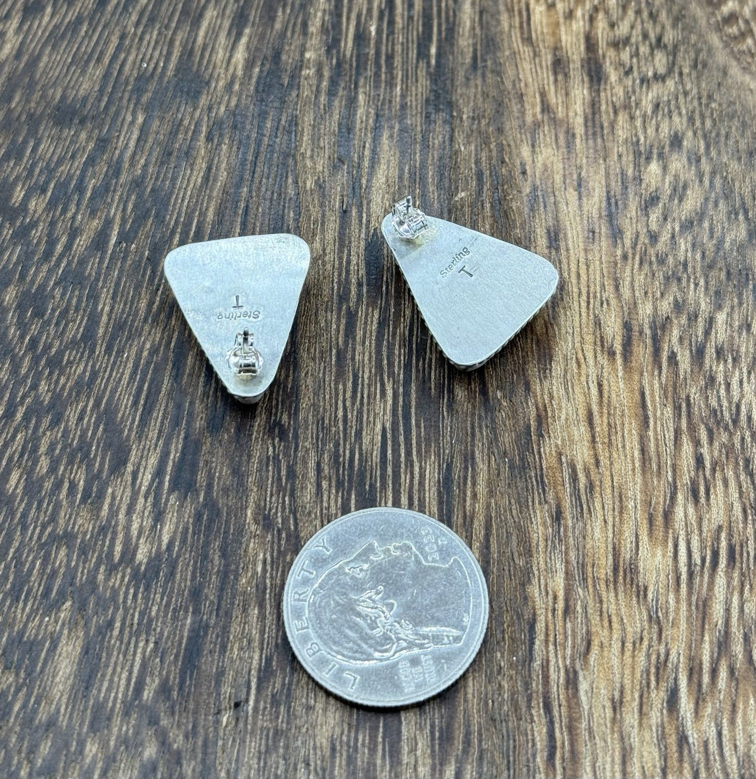 Native Navajo Handmade Sterling Silver Red Spiny Oyster Shell Post Stud Earrings