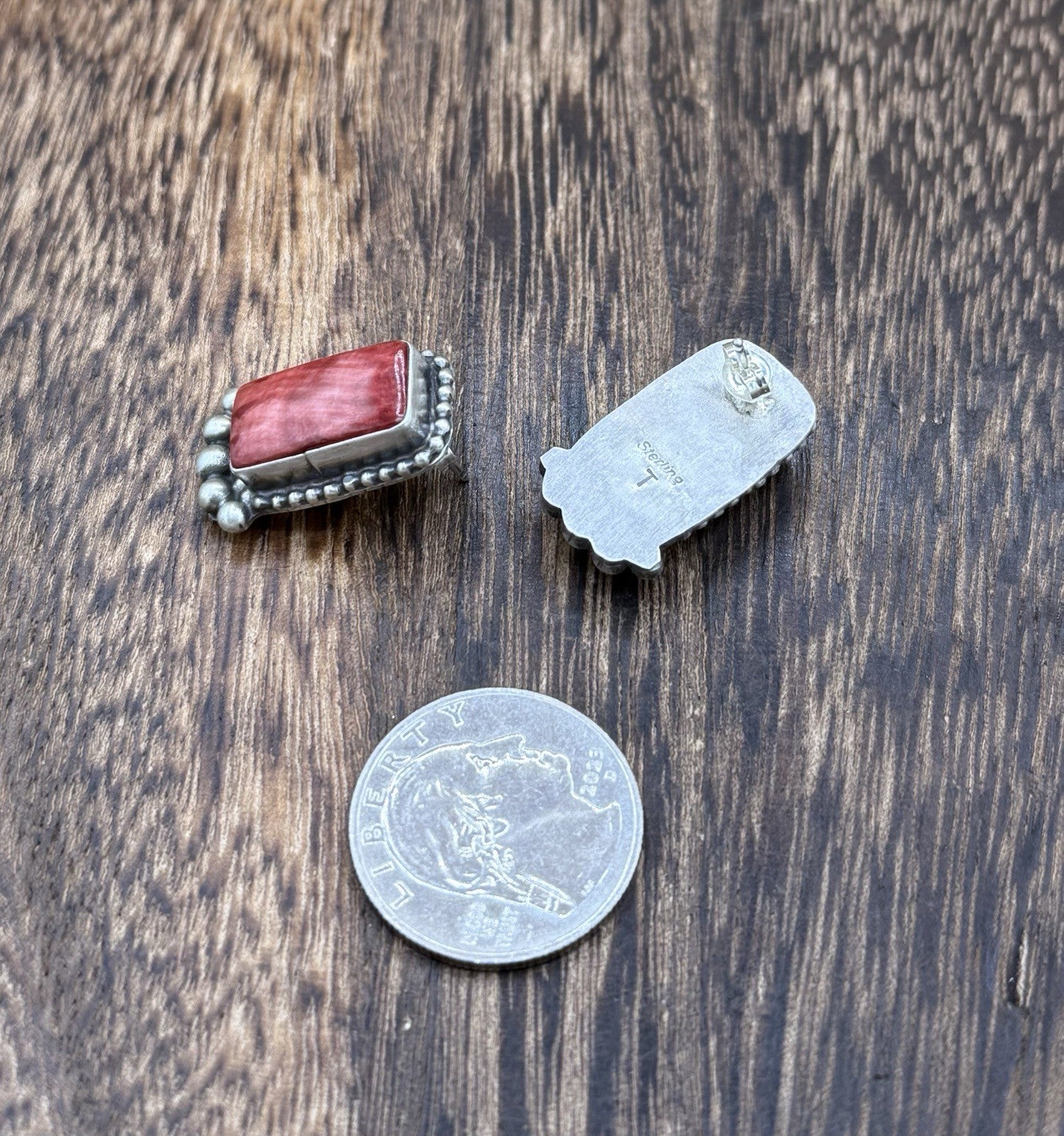 Native Navajo Handmade Sterling Silver Red Spiny Oyster Shell Post Stud Earrings