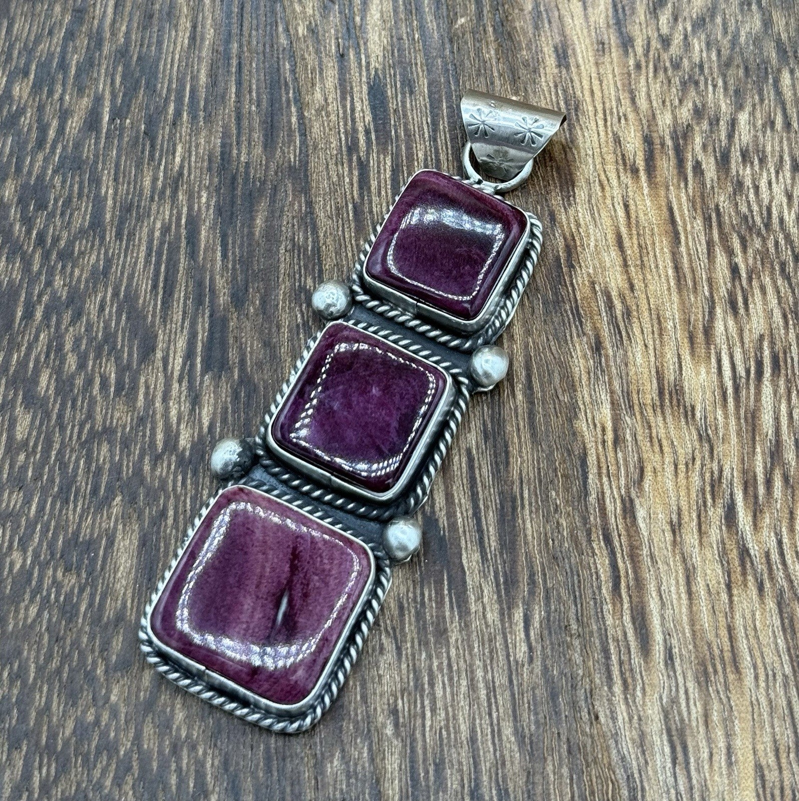 Elevate your jewelry collection with this exquisite Navajo handmade pendant. Crafted by Vicky Hicks, this stunning piece features a spiny oyster shell stone, set in a sterling silver setting.