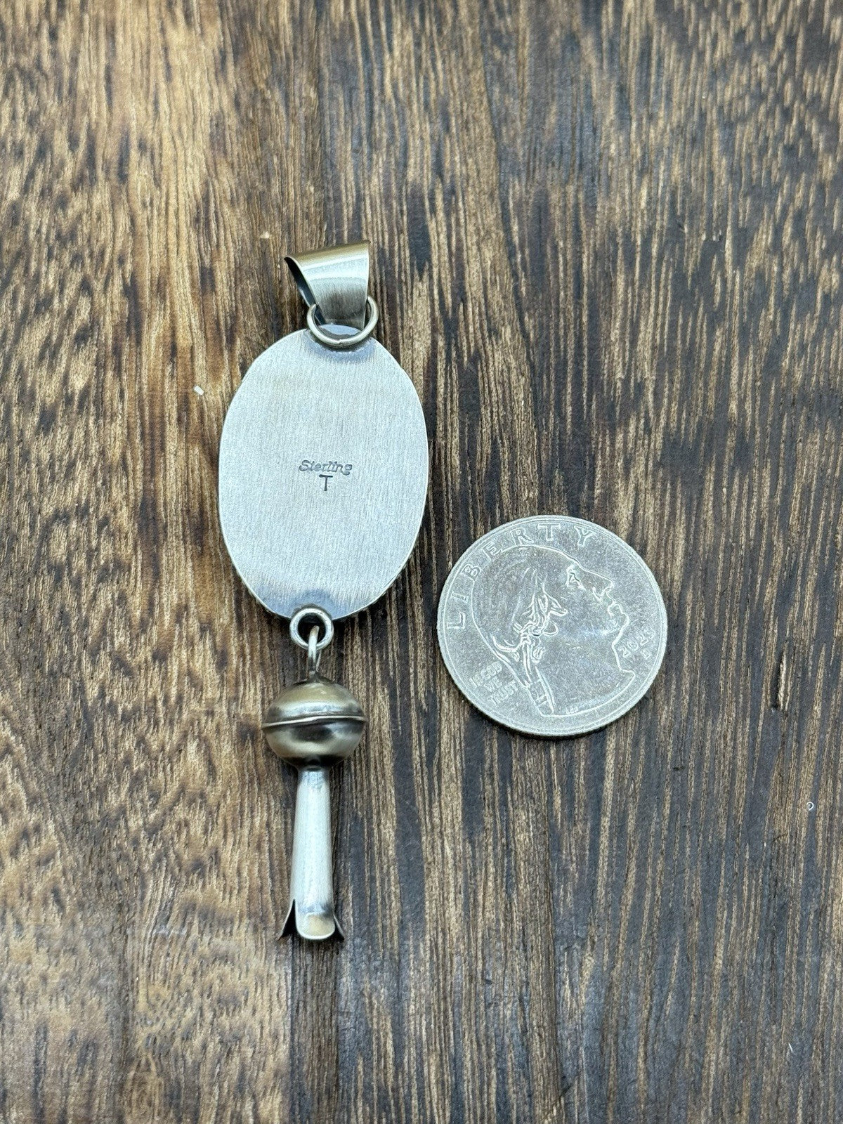 Native Navajo Handmade Sterling Silver Violet Rose Dahlia Dangle Blossom Pendant