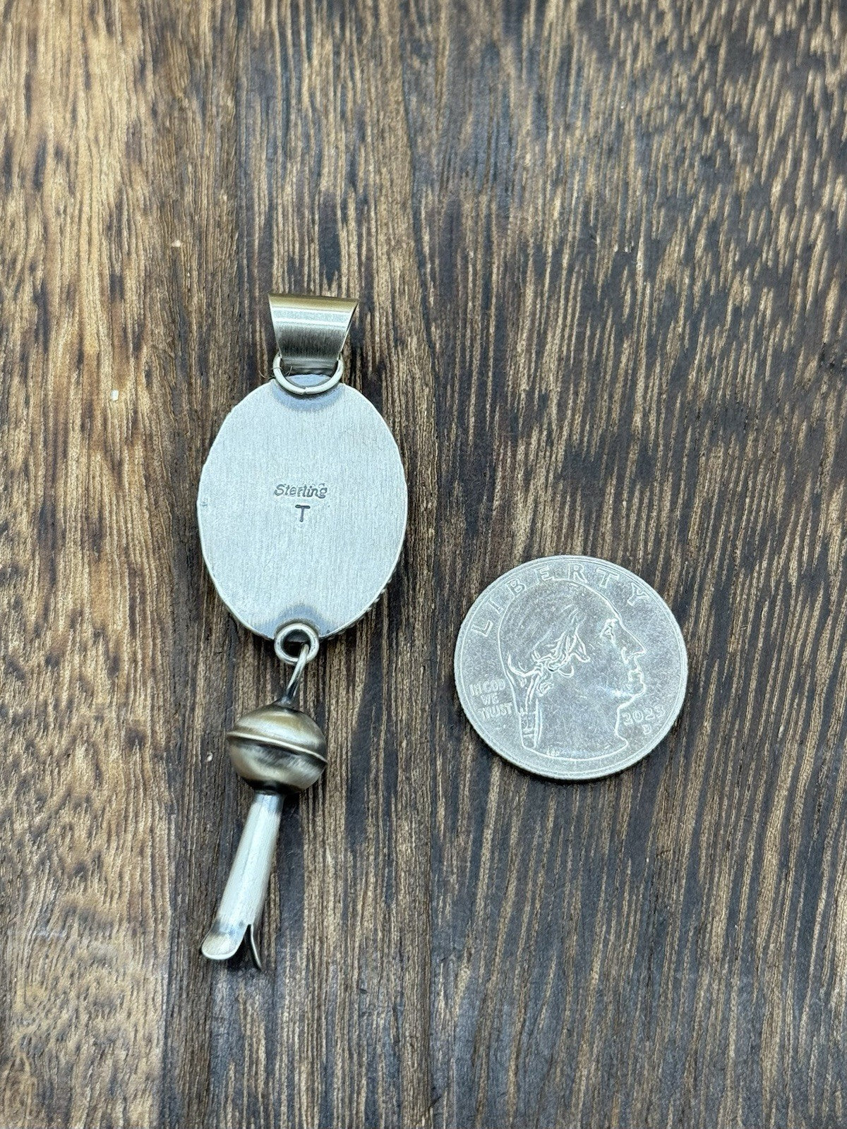 Native Navajo Handmade Sterling Silver Violet Rose Dahlia Dangle Blossom Pendant