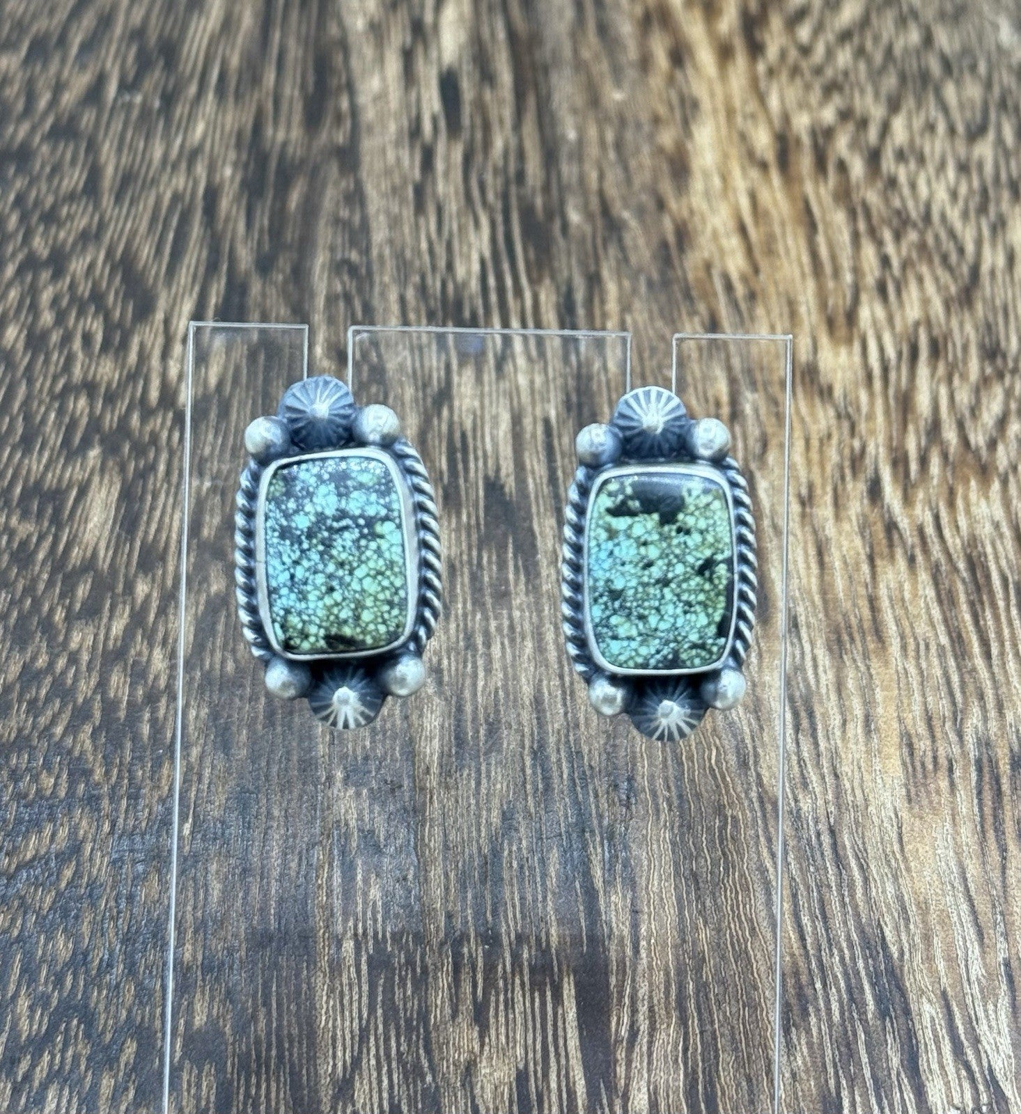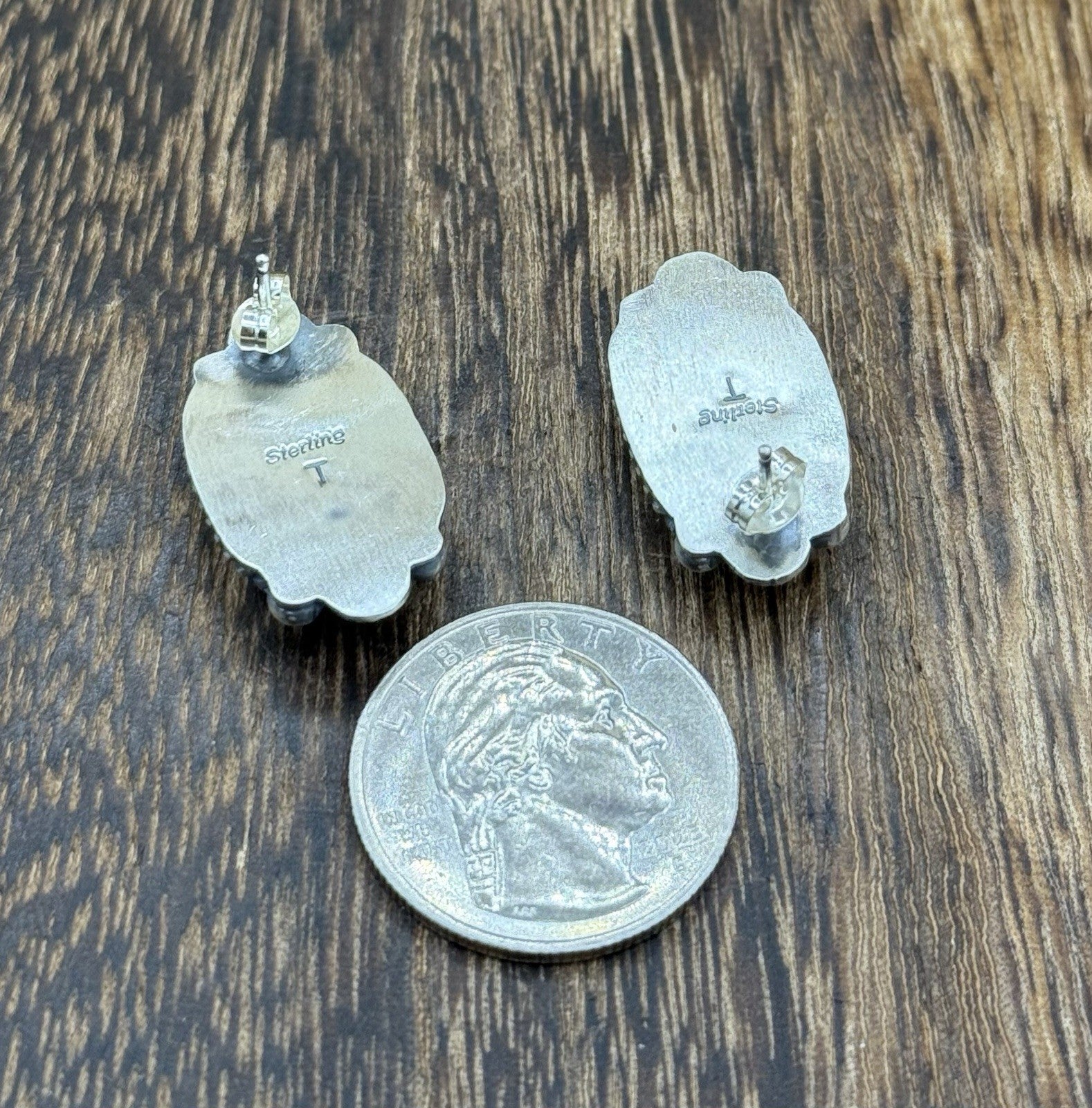 Navajo Handmade Sterling Silver Blackjack Turquoise Old Look Post Stud Earrings
