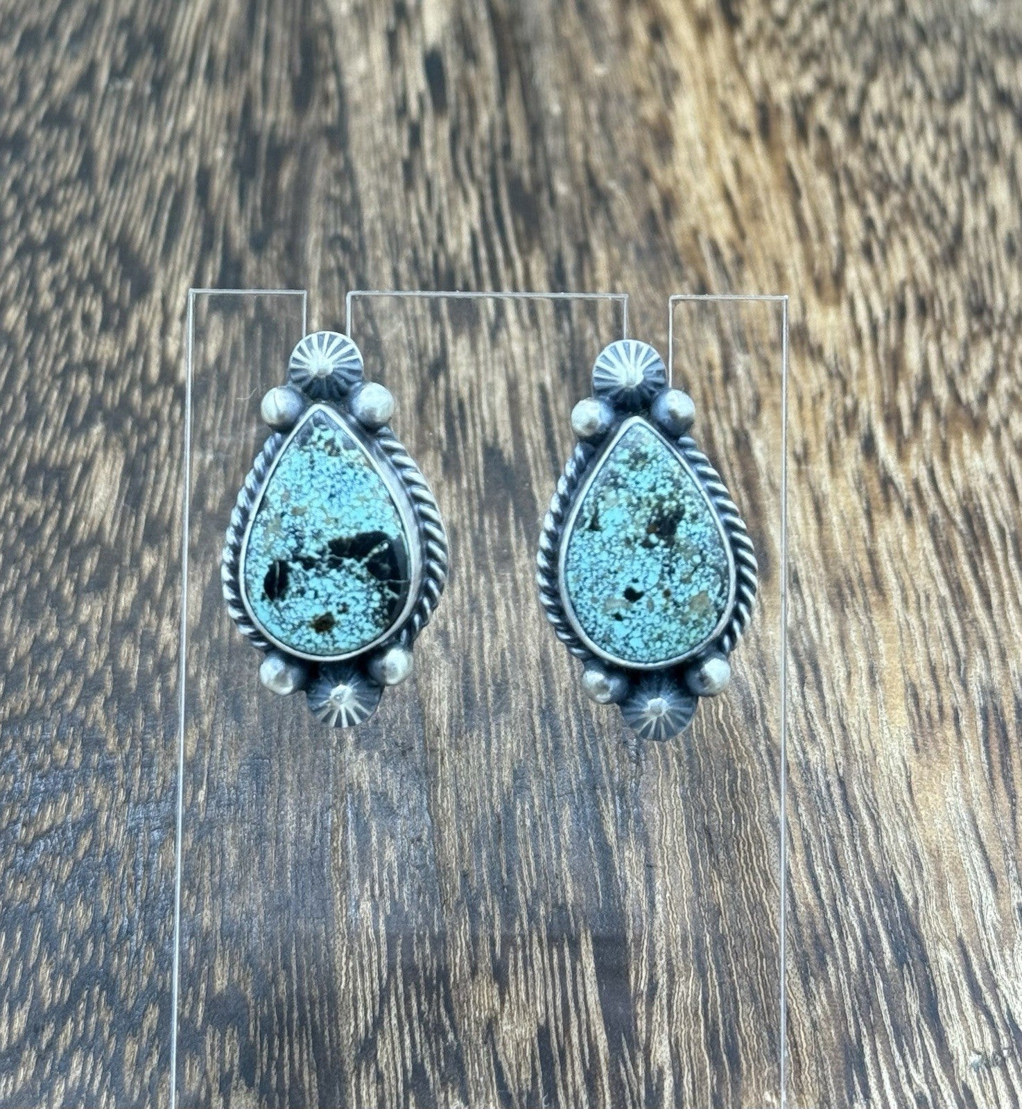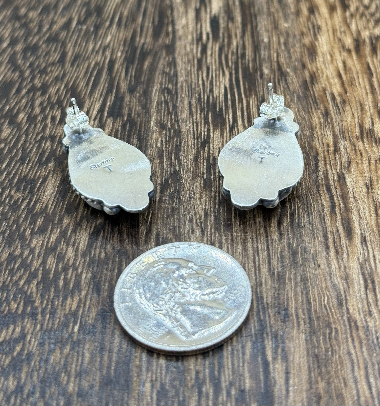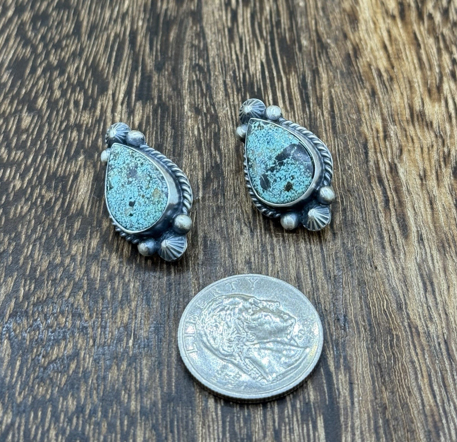 Navajo Handmade Sterling Silver Blackjack Turquoise Old Look Post Stud Earrings
