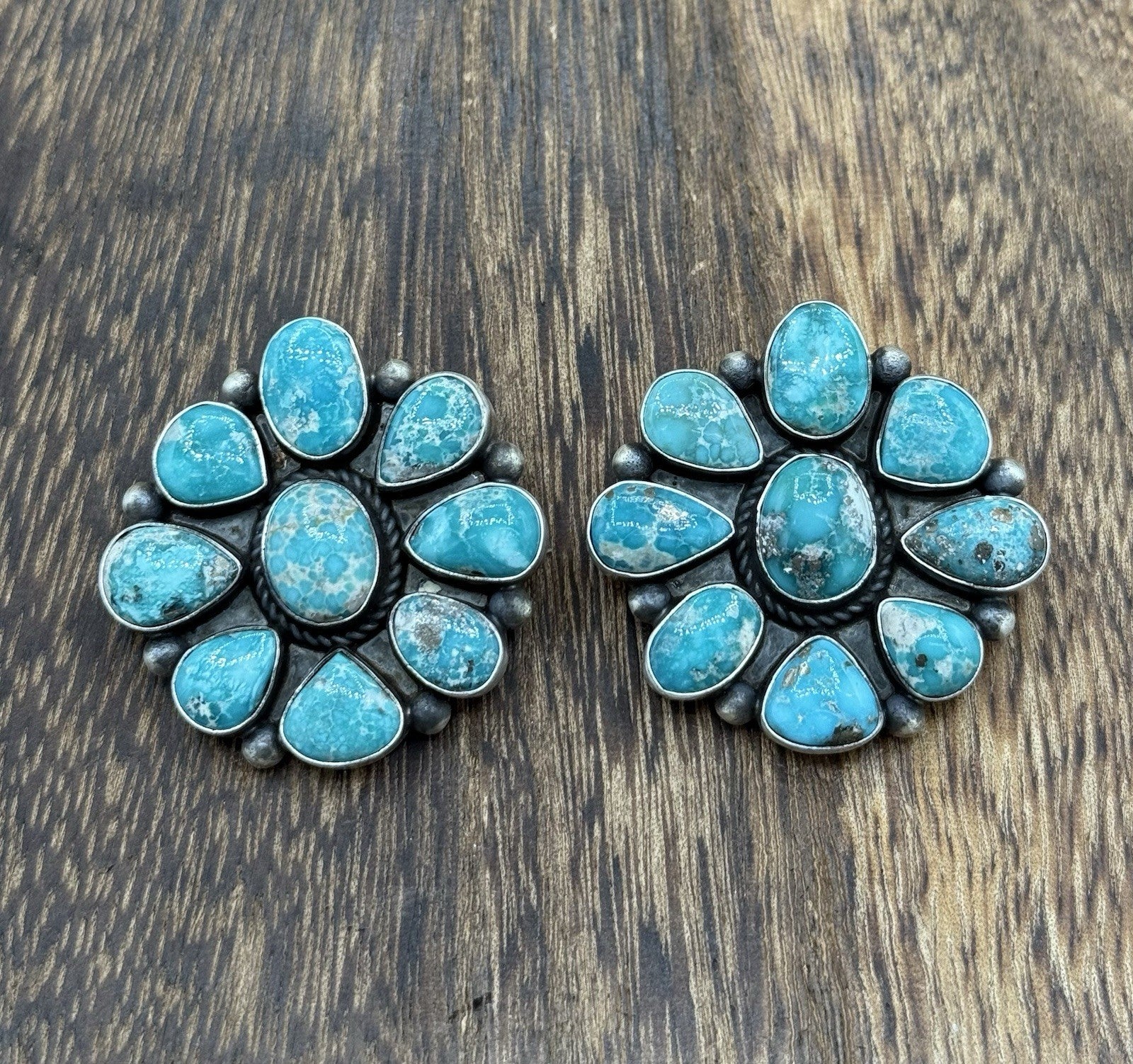 Add a touch of Native American heritage to your jewelry collection with these beautiful post cluster earrings. Handmade by Navajo artisan Debra Smith, these sterling silver earrings feature stunning blue bird Turquoise stones in a bezel cluster setting. The old look of the earrings adds to their charm and appeal.