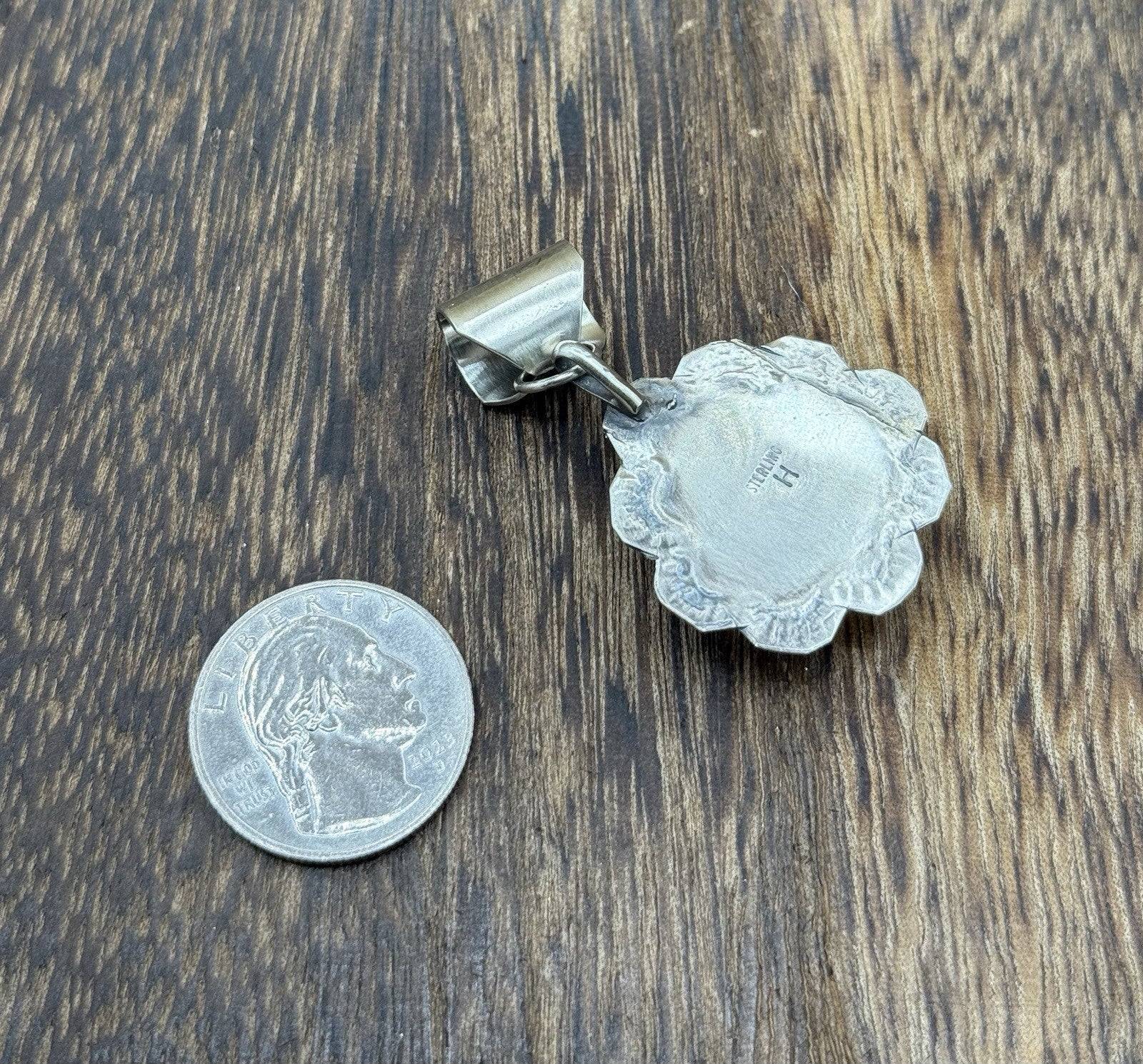 Navajo Handmade Sterling Silver Blue Bird Turquoise Stamped Design Drop Pendant