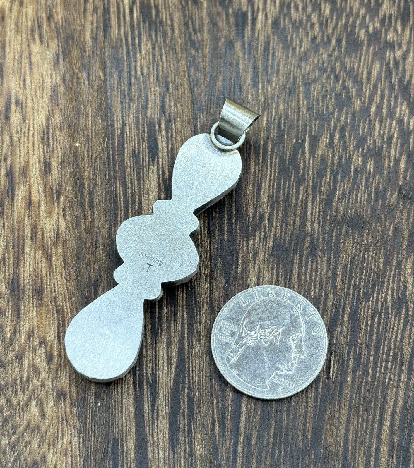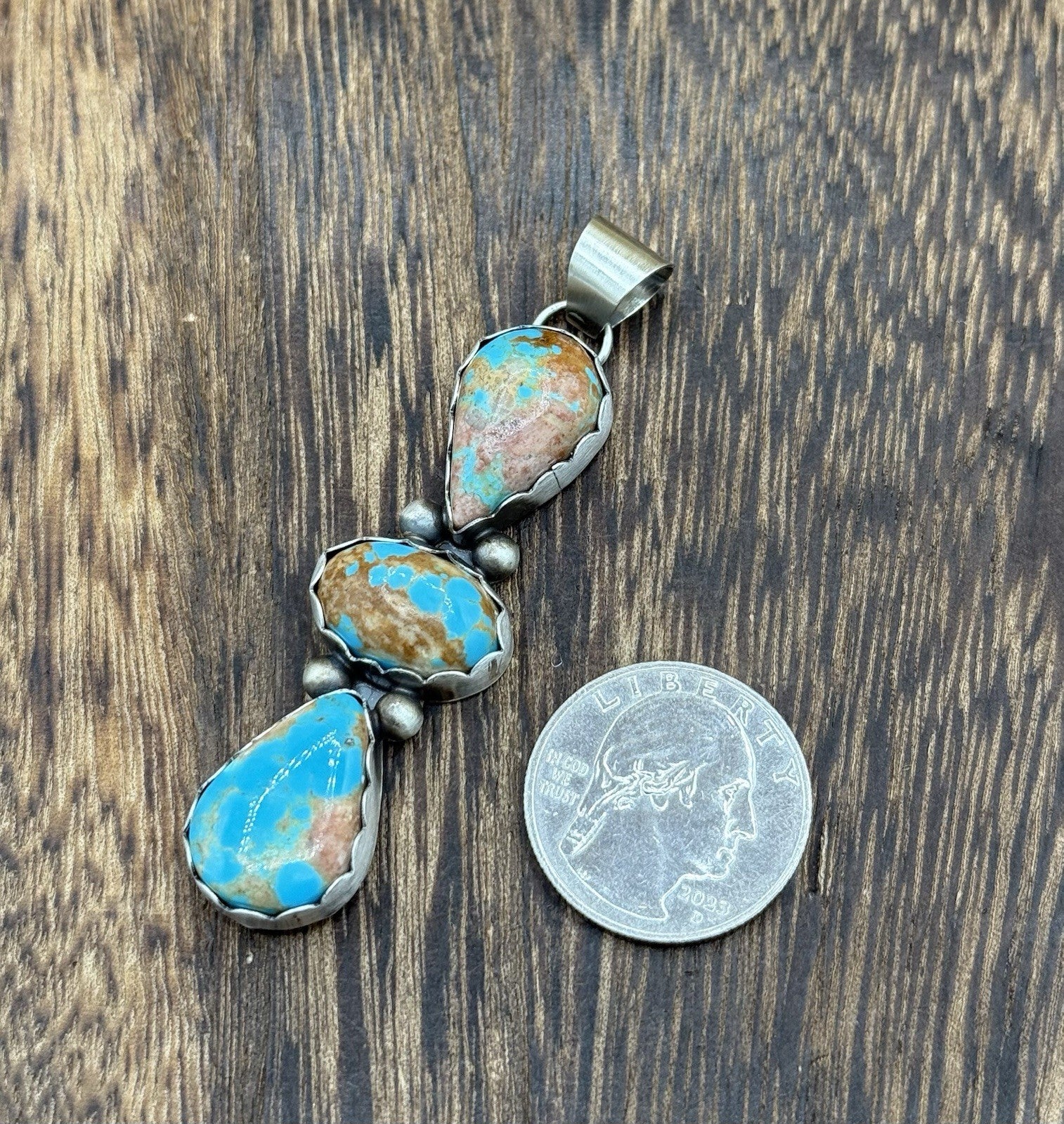 Elevate your jewelry collection with this exquisite Navajo handmade pendant. Crafted by Tricia Smith, this stunning piece features a cluster of turquoise stones , set in a sterling silver bar setting.