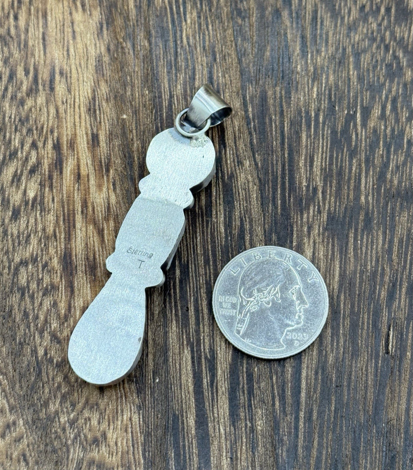 Elevate your jewelry collection with this exquisite Navajo handmade pendant. Crafted by Tricia Smith, this stunning piece features a cluster of turquoise stones , set in a sterling silver bar setting.