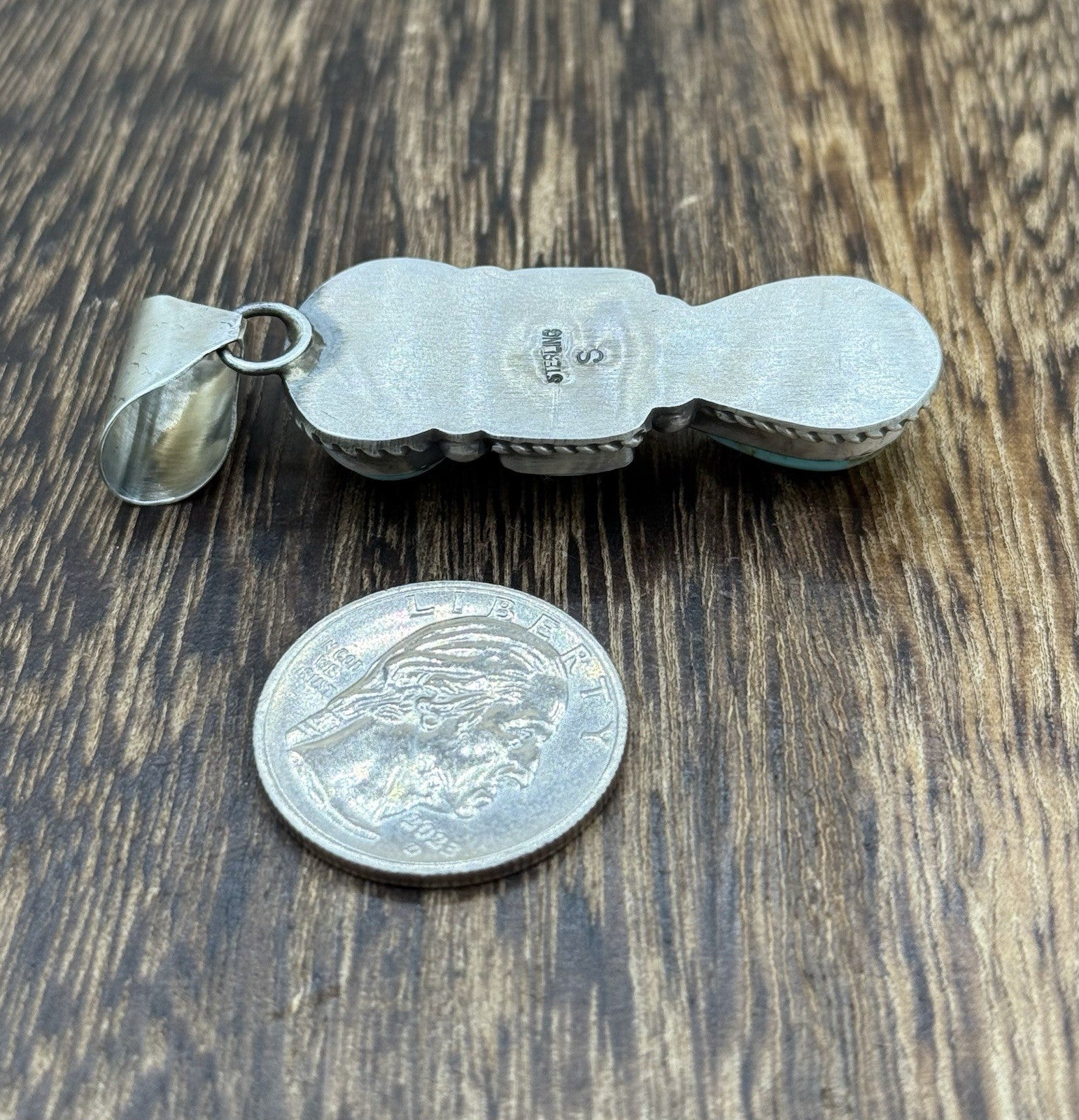 Elevate your jewelry collection with this exquisite Navajo handmade pendant. Crafted by Debra Smith, this stunning piece features a cluster of turquoise stones , set in a sterling silver bar setting.