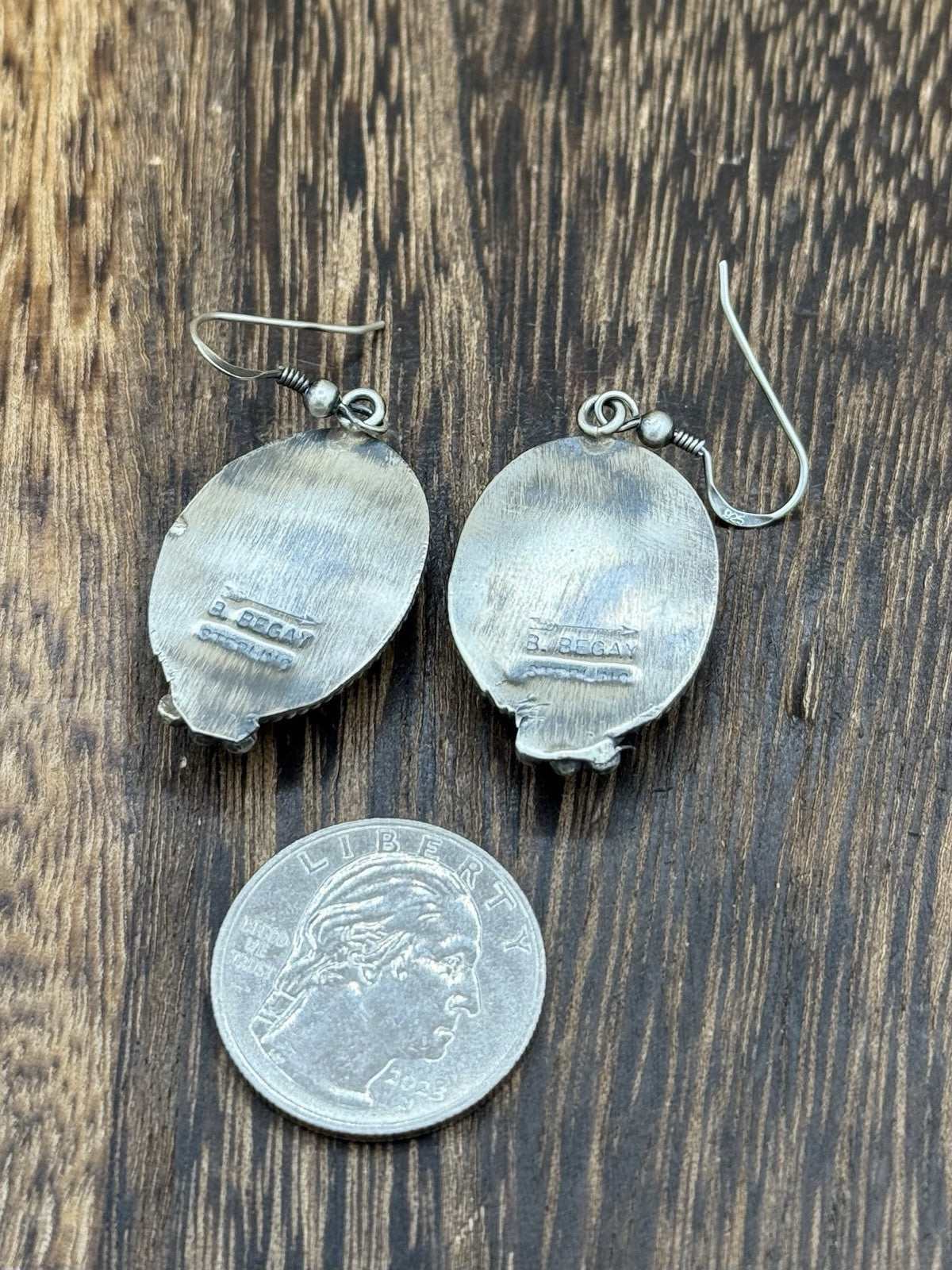 Navajo Handmade Sterling Silver Blue Glacier Turquoise Dangle Earrings Byron B.