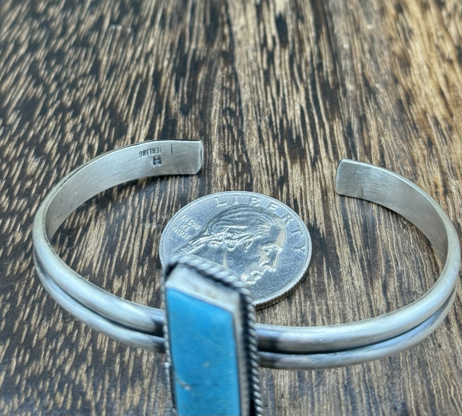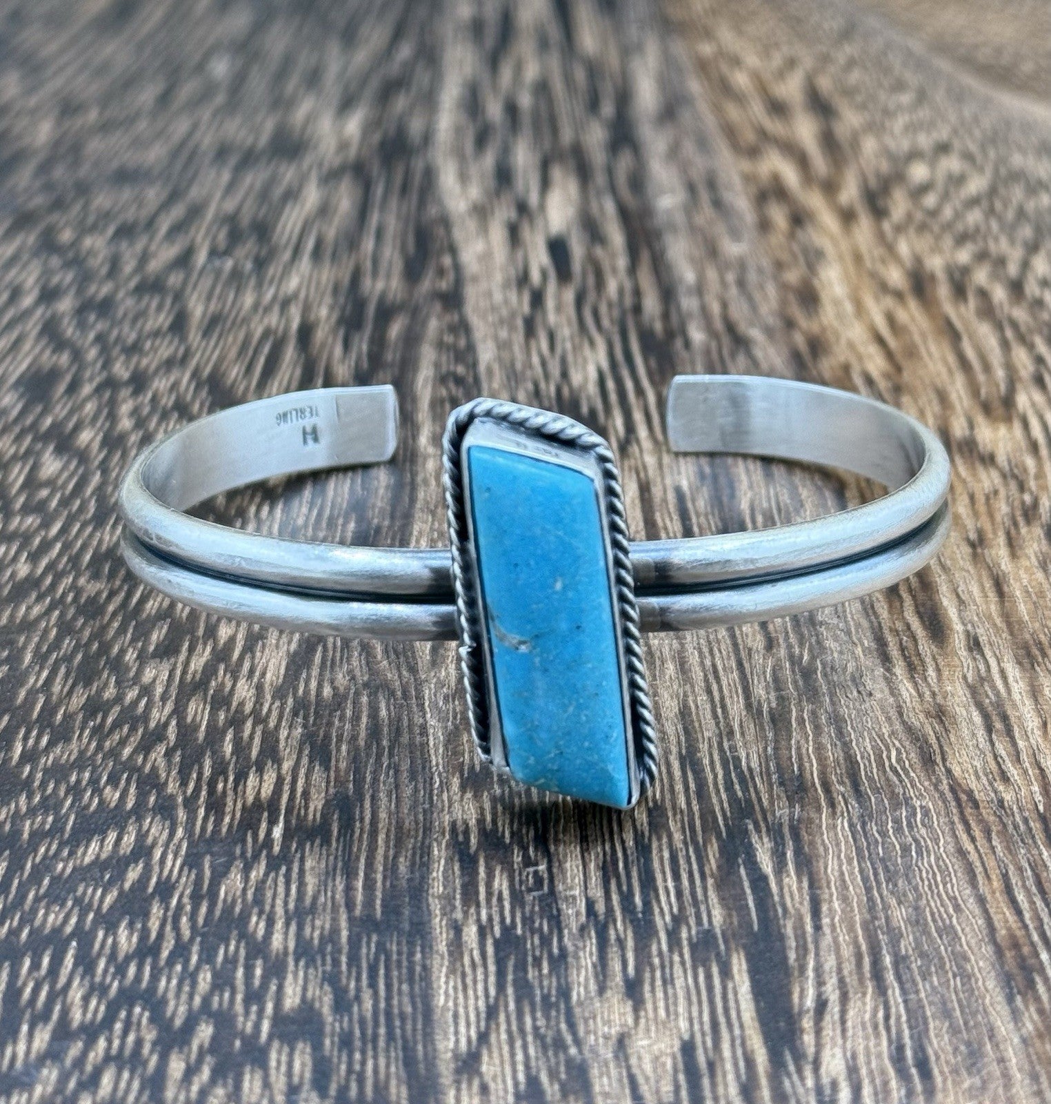 Navajo Handmade Sterling Silver Blue Glacier Turquoise Stacker Cuff Bracelet