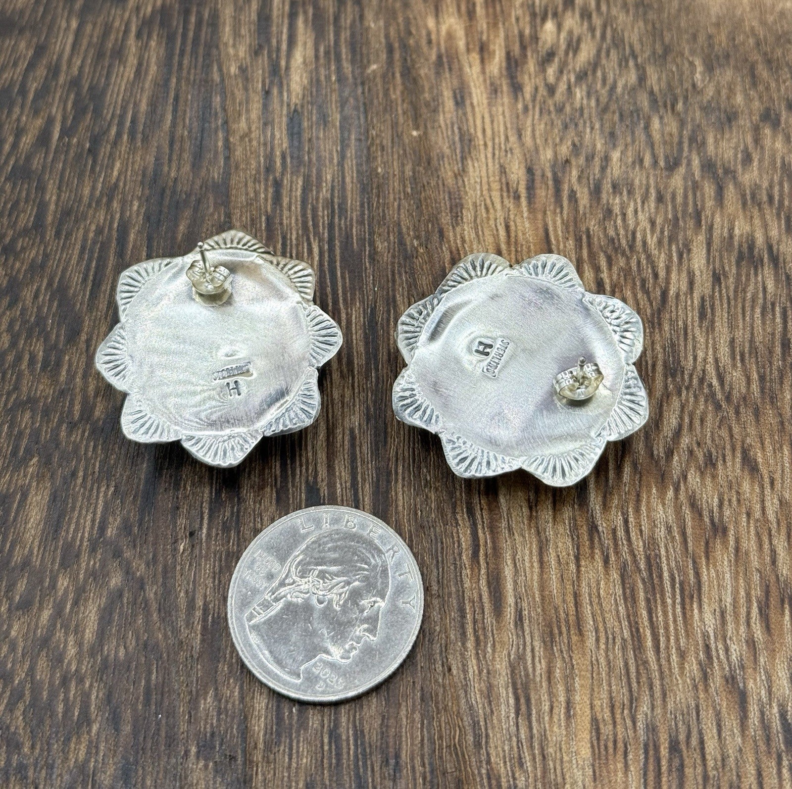 Navajo Handmade Sterling Silver Blue Glacier Turquoise Stamped Post Earrings