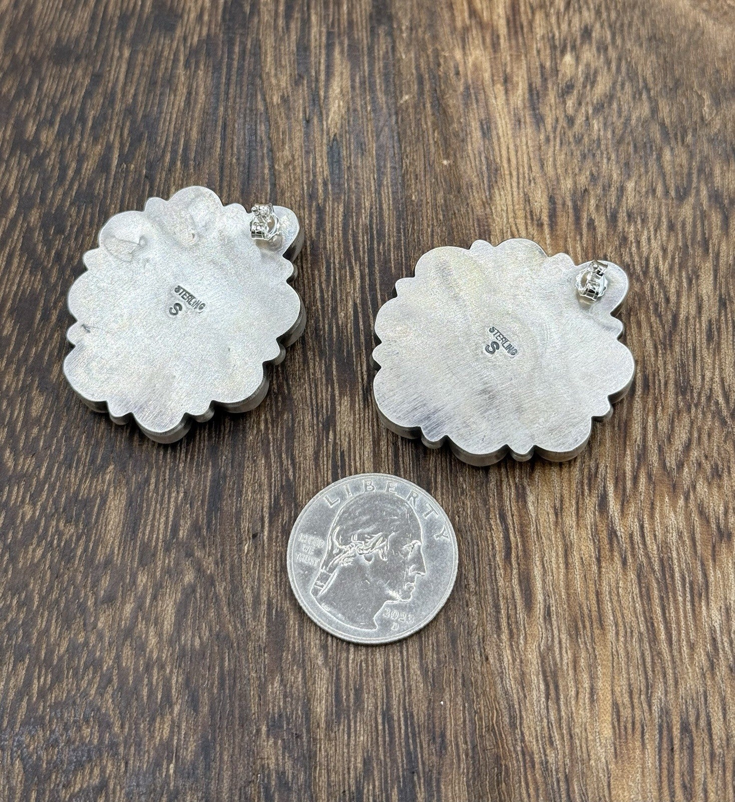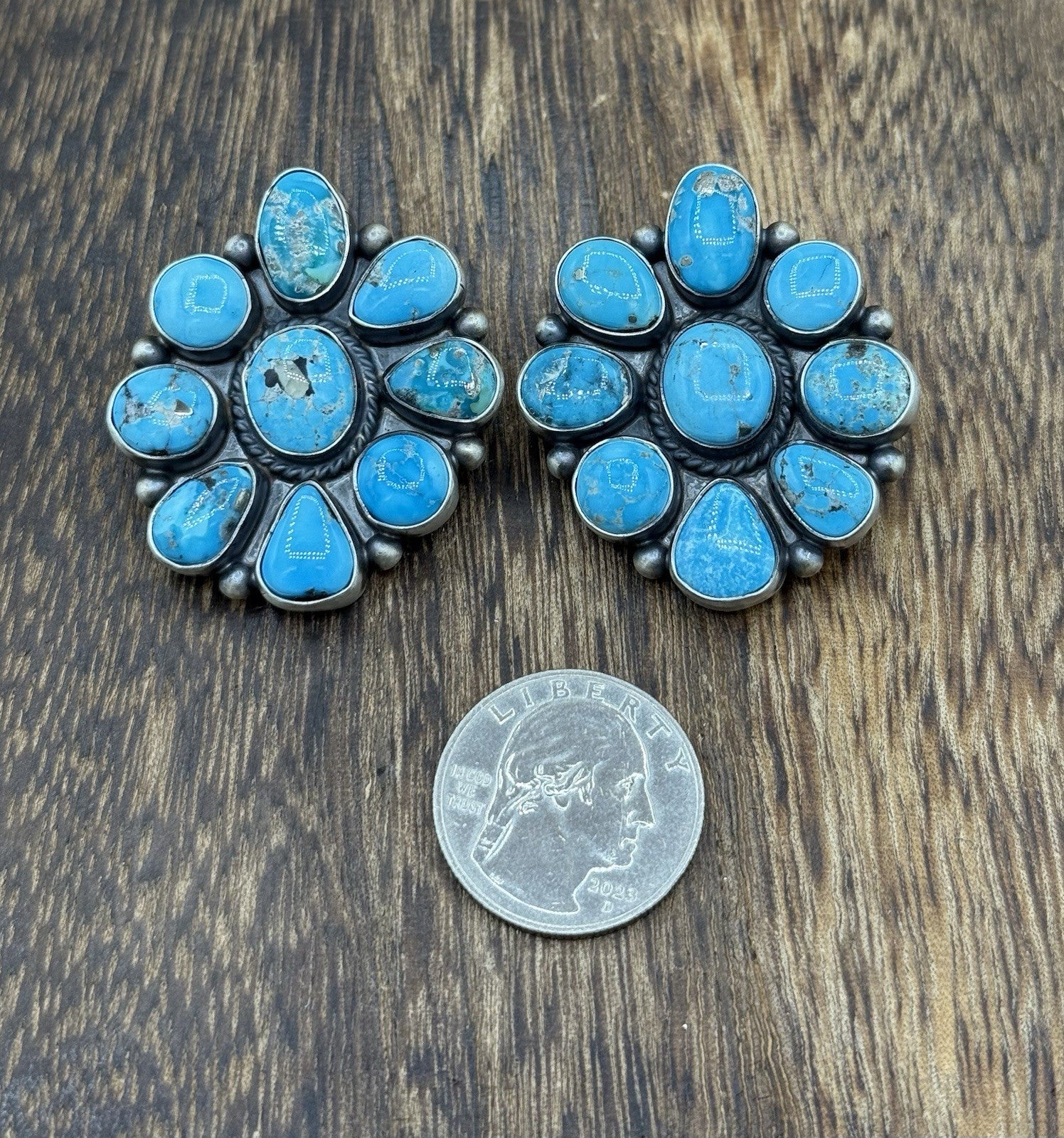 Navajo Handmade Sterling Silver Blue Ridge Turquoise Cluster Post Large Earrings