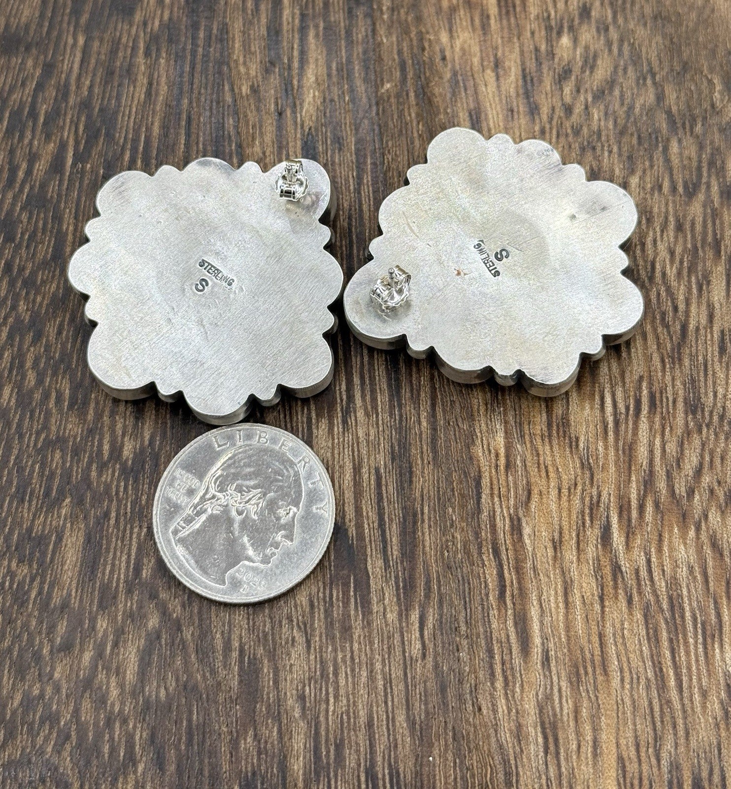 Navajo Handmade Sterling Silver Blue Ridge Turquoise Cluster Post Large Earrings