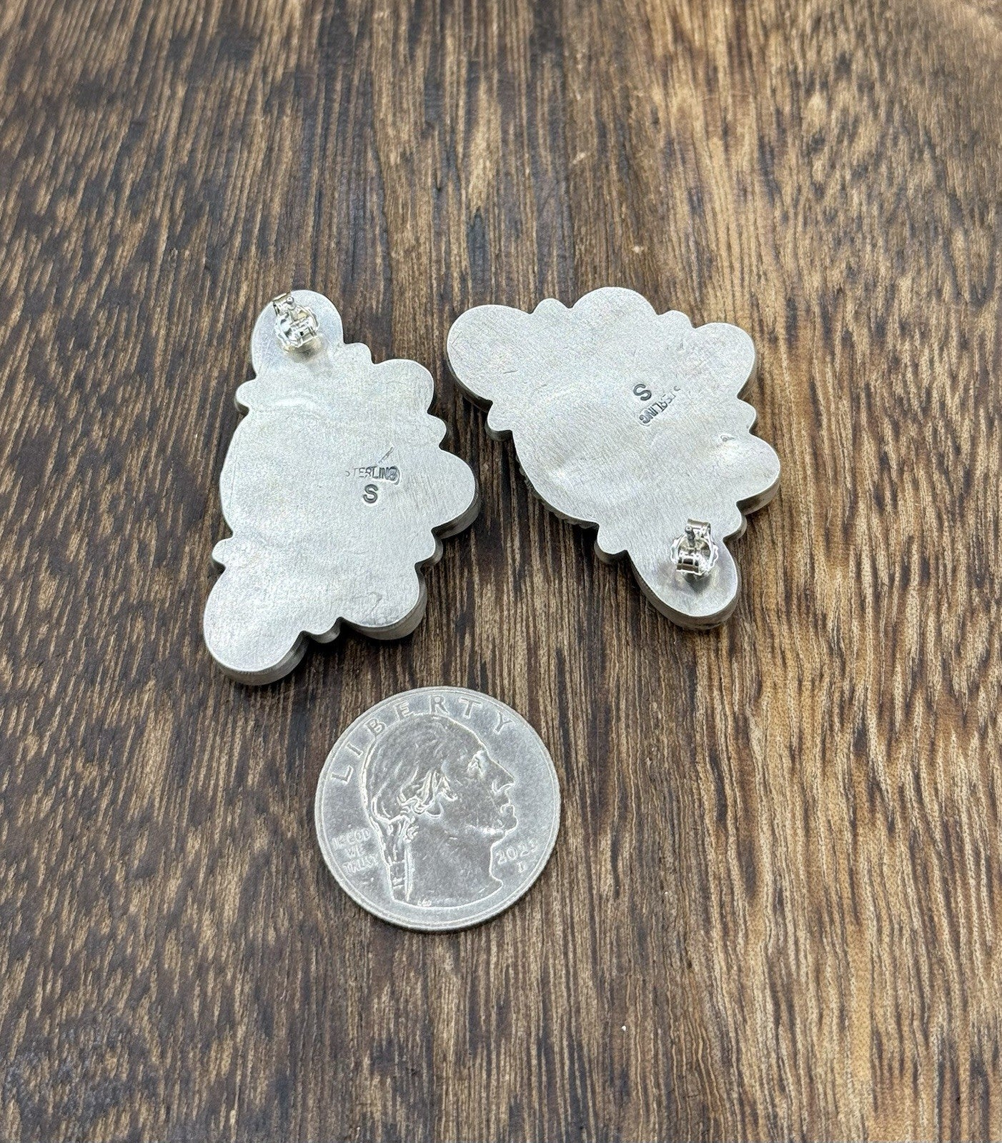 Navajo Handmade Sterling Silver Blue Ridge Turquoise Half Cluster Large Earrings