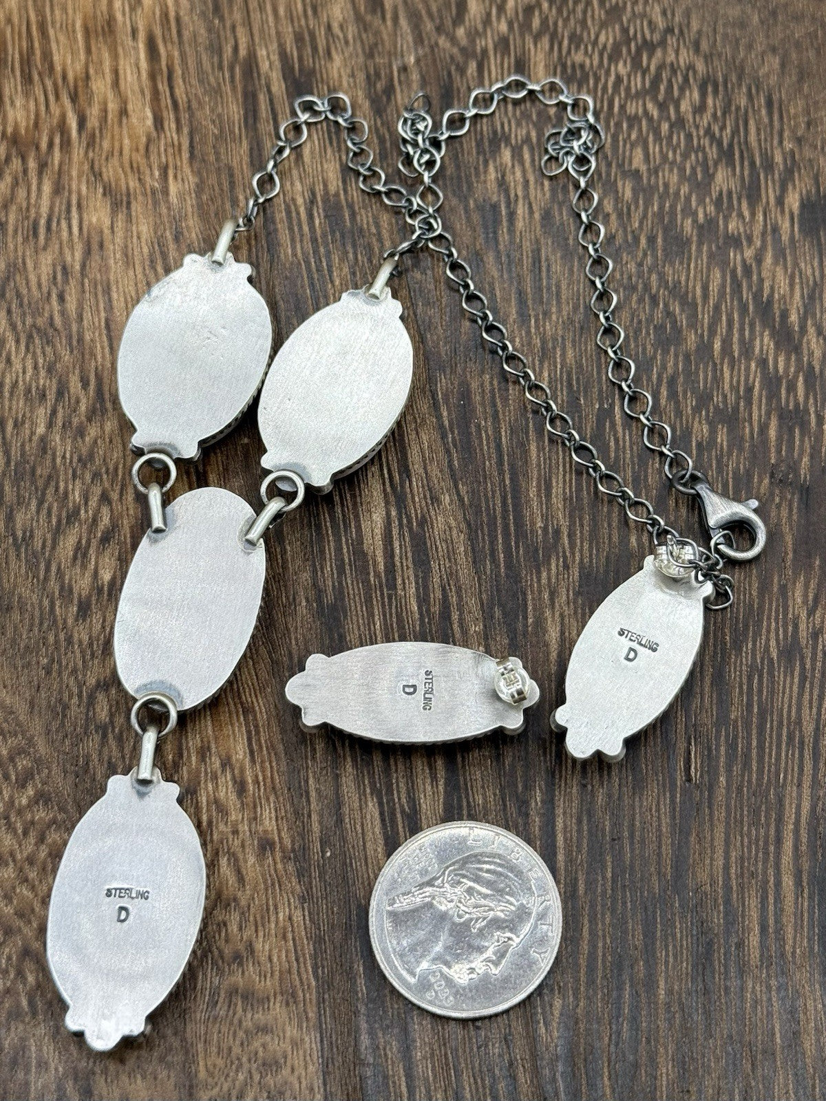 Navajo Handmade Sterling Silver Dahlia Rose Lariat Necklace Set 18”