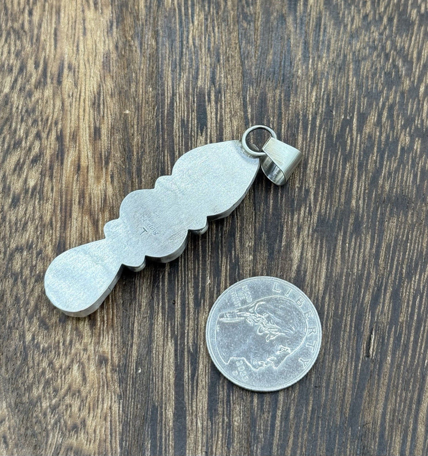 Elevate your jewelry collection with this exquisite Navajo handmade pendant. Crafted by Tricia Smith, this stunning piece features a cluster of turquoise stones , set in a sterling silver bar setting.