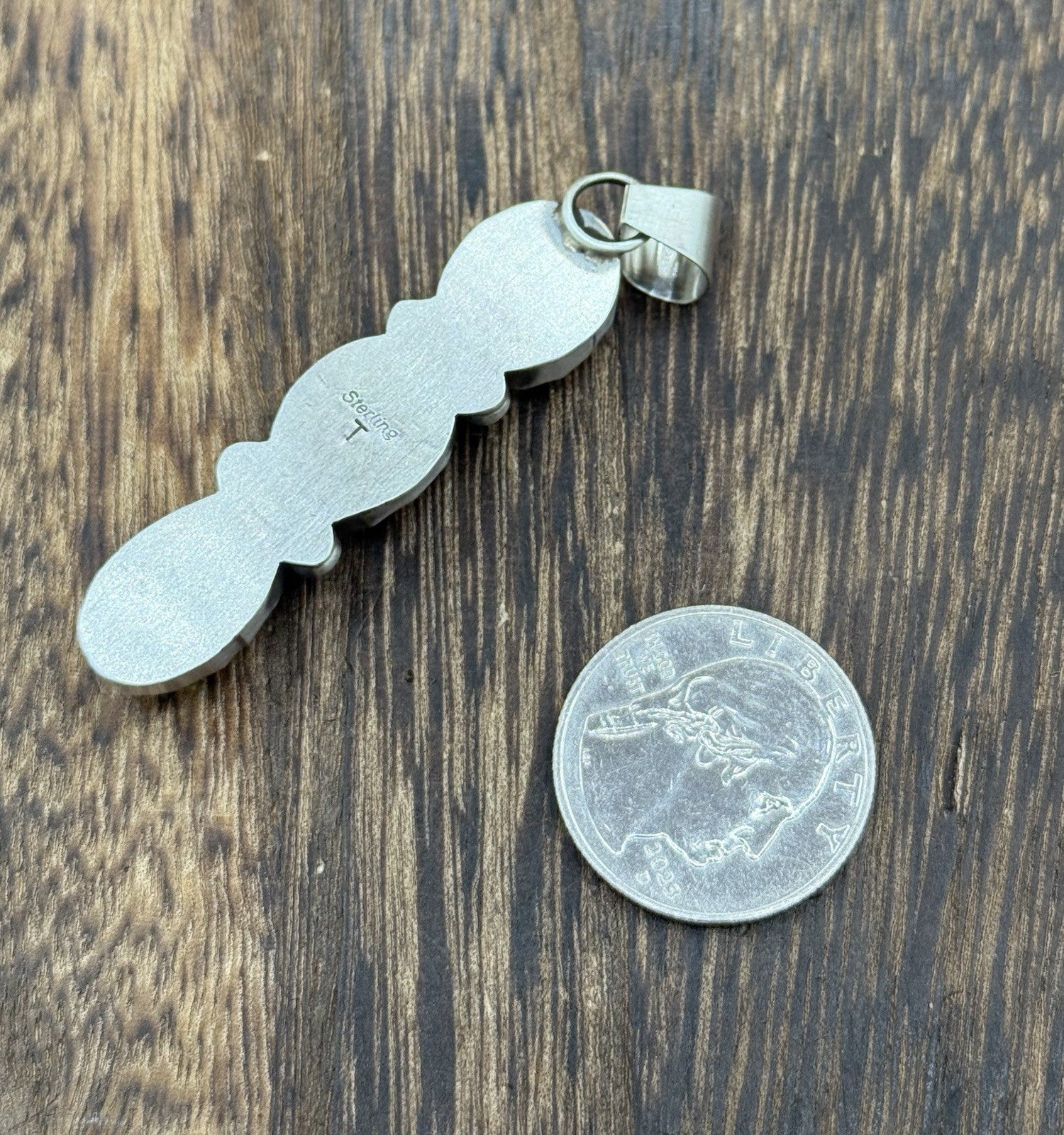 Elevate your jewelry collection with this exquisite Navajo handmade pendant. Crafted by Tricia Smith, this stunning piece features a cluster of turquoise stones , set in a sterling silver bar setting.