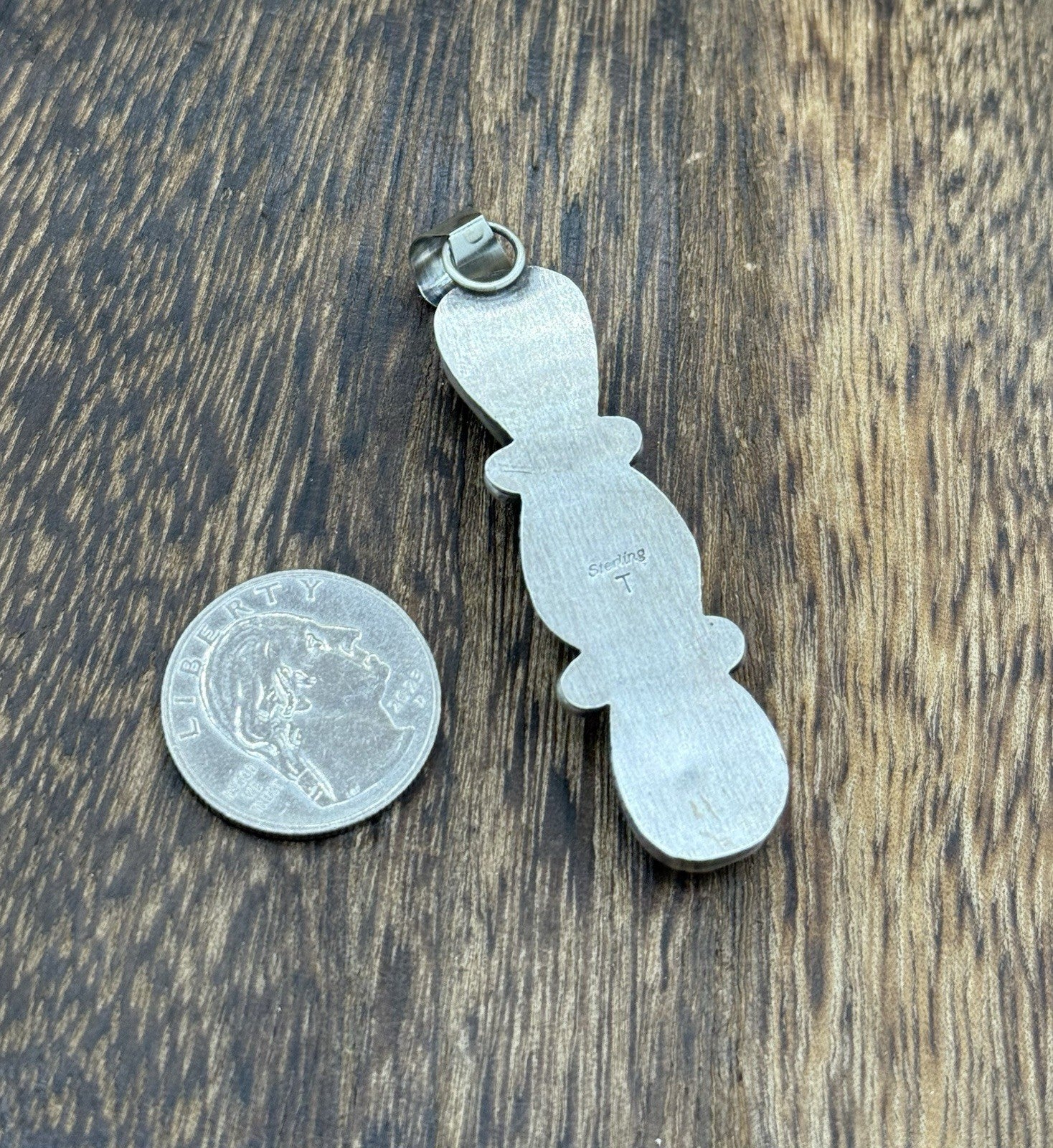 Elevate your jewelry collection with this exquisite Navajo handmade pendant. Crafted by Tricia Smith, this stunning piece features a cluster of turquoise stones , set in a sterling silver bar setting.