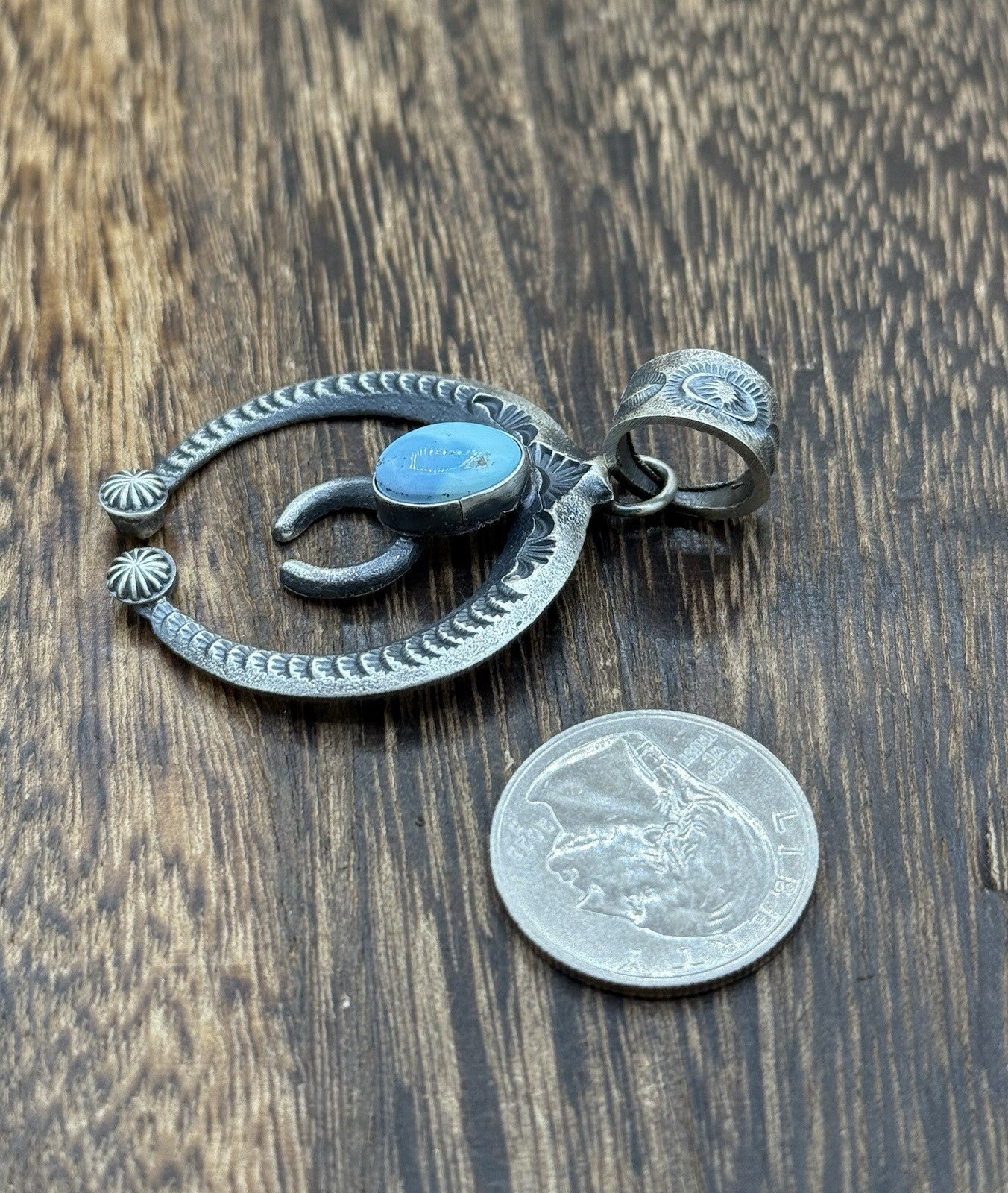 Navajo Handmade Sterling Silver Golden Hills Turquoise Naja Pendant Kevin Billah