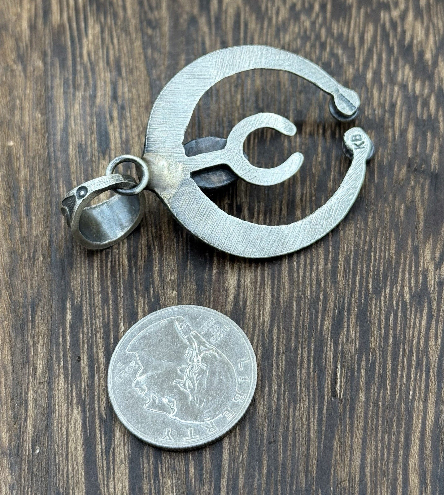 This beautiful pendant is a true work of art. Cast Handmade by Kevin Billah, a Native American artisan, it features a unique dangle shape and a bezel setting style. The pendant is made of 925 sterling silver and adorned with a stunning golden hills turquoise stone.