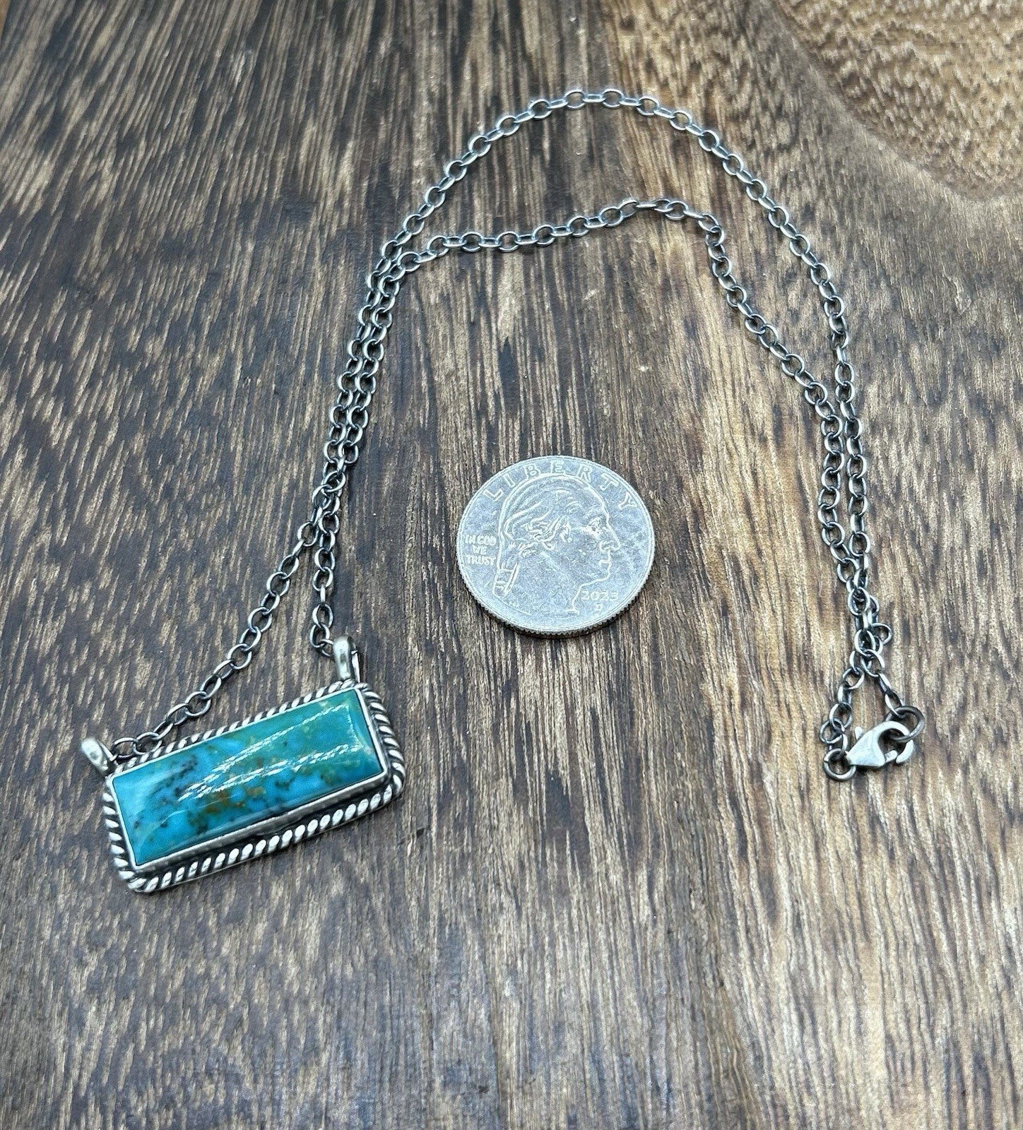 Navajo Handmade Sterling Silver Kingman Turquoise Bar Necklace 16”
