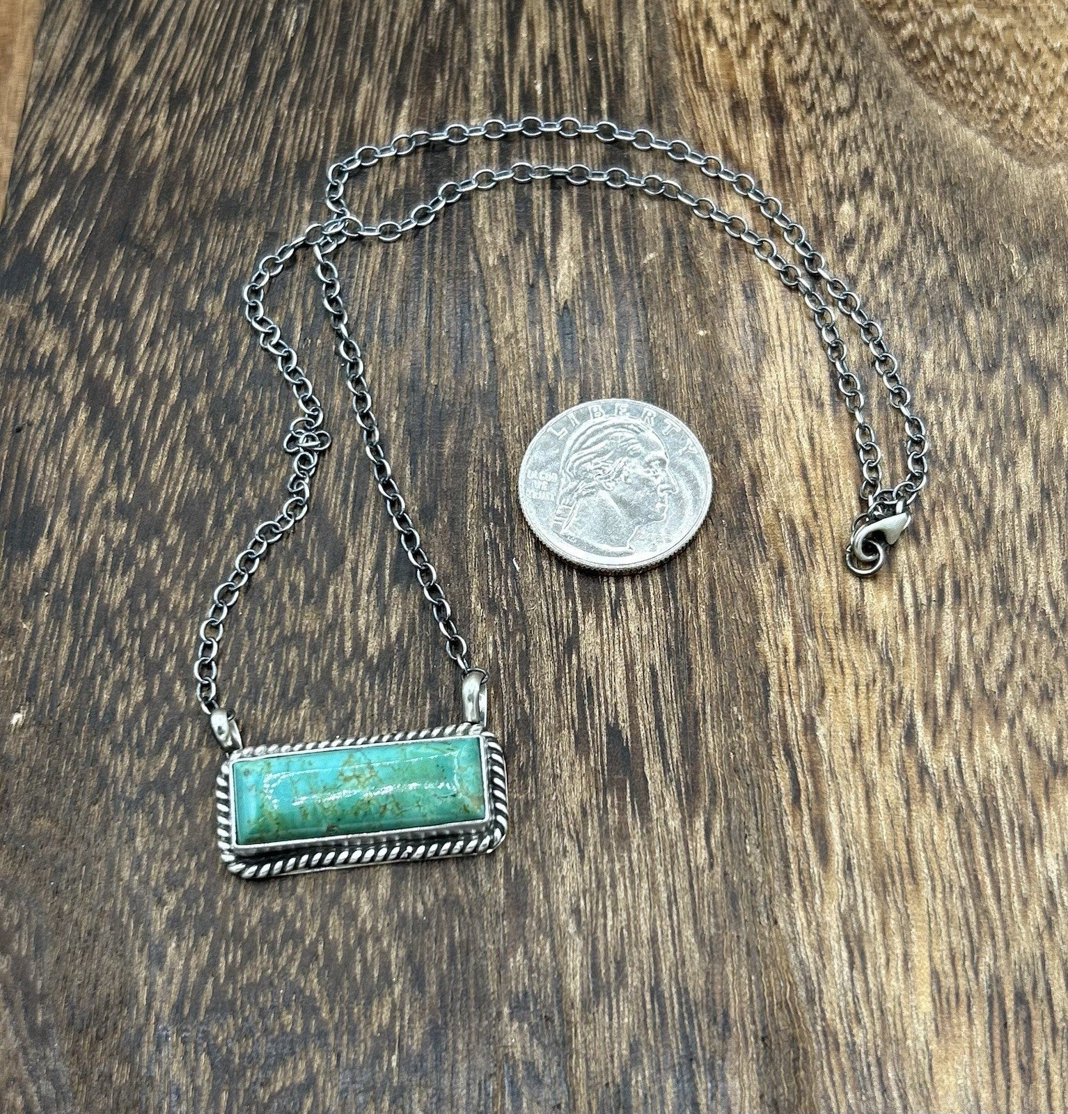 Navajo Handmade Sterling Silver Kingman Turquoise Bar Necklace 16”