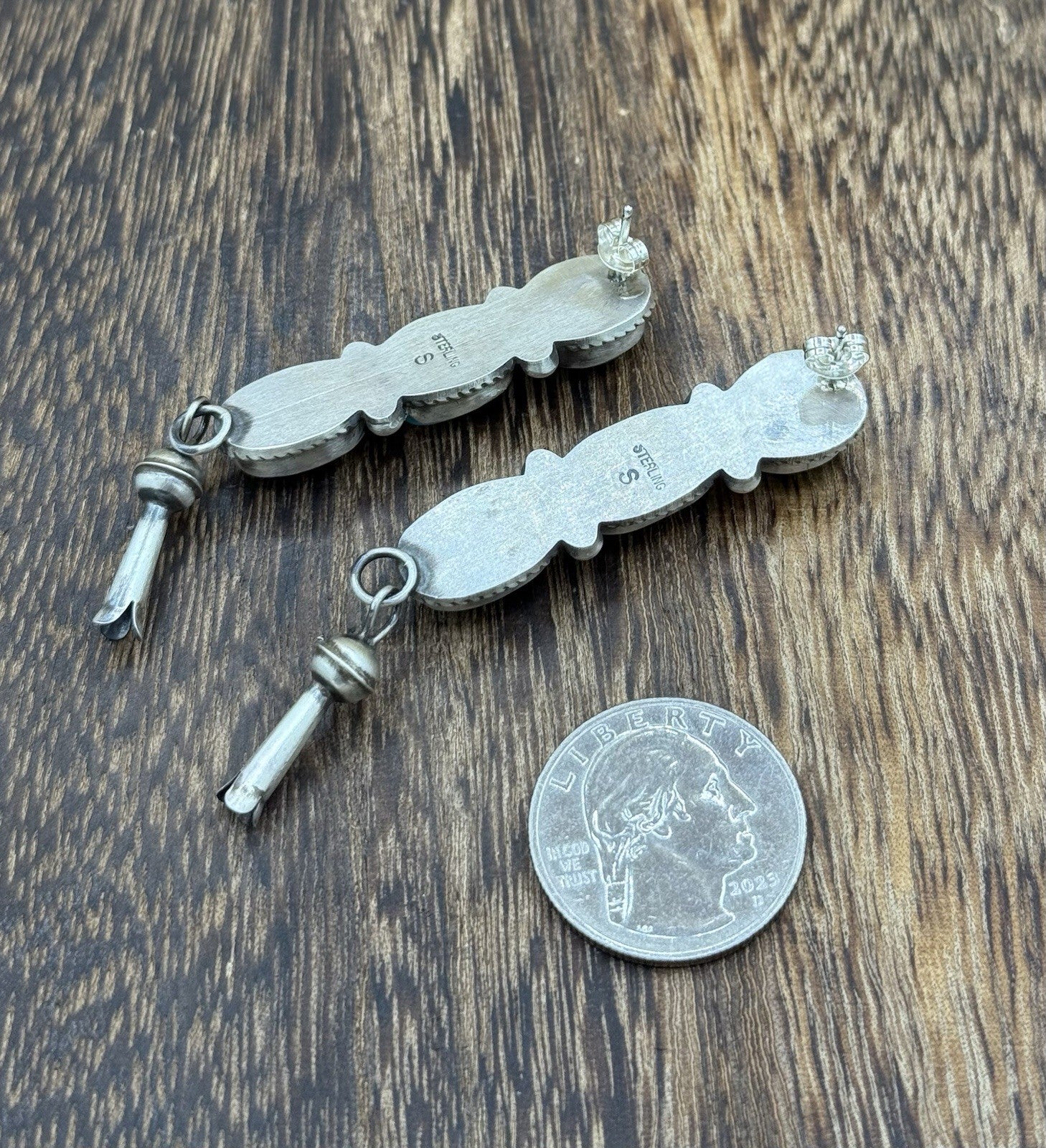 Add a touch of Native American heritage to your jewelry collection with these beautiful post dangle earrings. Handmade by Navajo artisan Debra Smith, these sterling silver earrings feature stunning Kingman Turquoise stones in a bezel setting. The old look of the earrings adds to their charm and appeal.