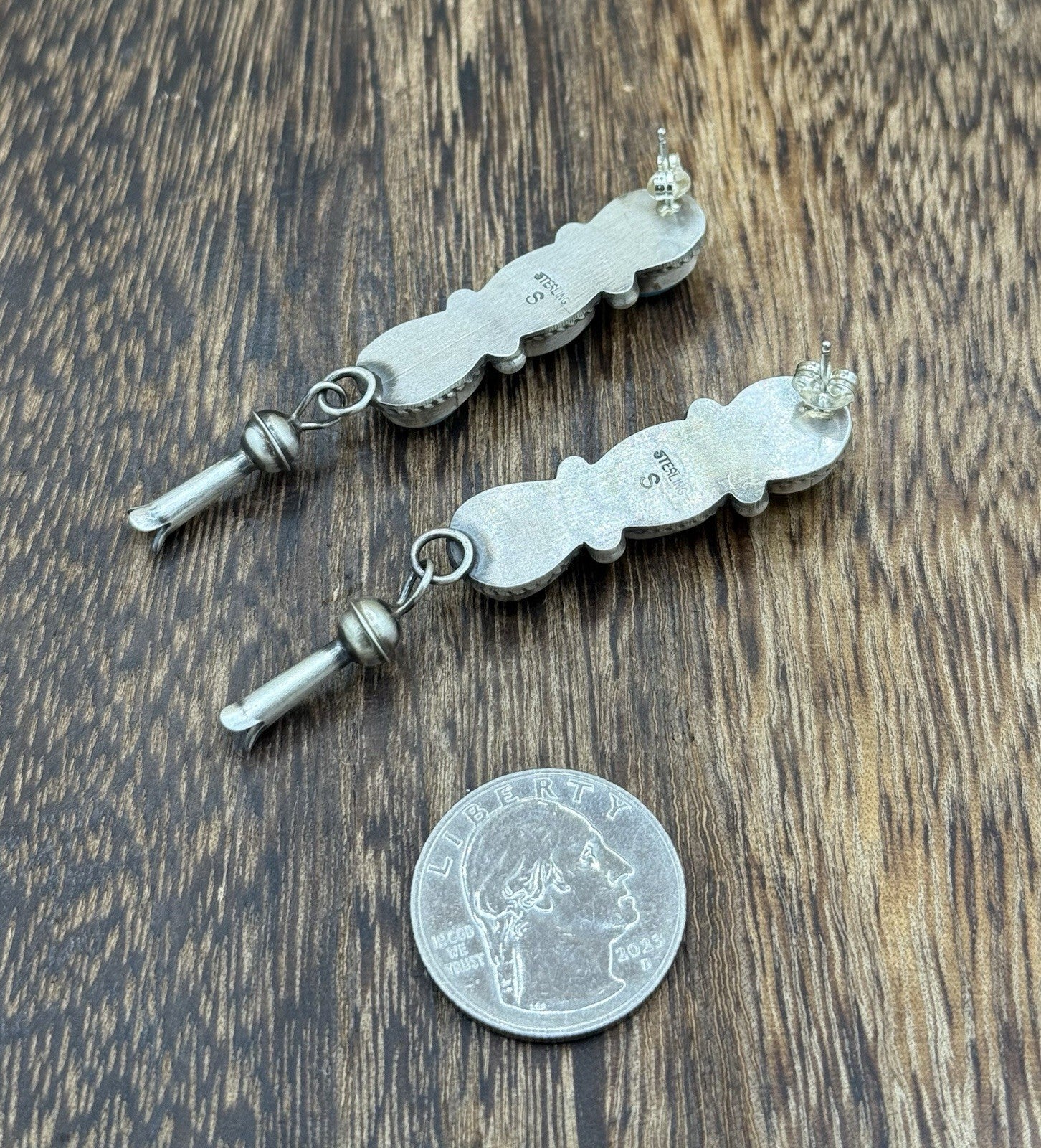 Add a touch of Native American heritage to your jewelry collection with these beautiful post dangle earrings. Handmade by Navajo artisan Debra Smith, these sterling silver earrings feature stunning Kingman Turquoise stones in a bezel setting. The old look of the earrings adds to their charm and appeal.
