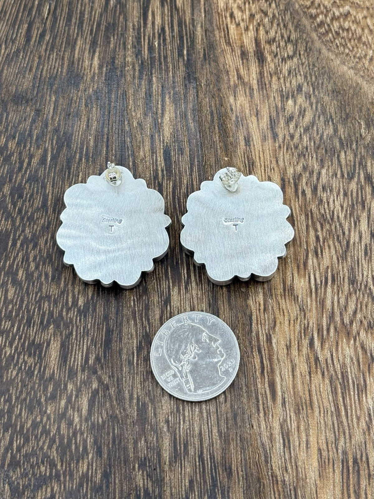 Add a touch of Native American heritage to your jewelry collection with these beautiful post stud large cluster earrings. Handmade by Navajo artisan Tricia Smith, these sterling silver earrings feature stunning Kingman Turquoise stones in a bezel cluster setting. The old look of the earrings adds to their charm and appeal.