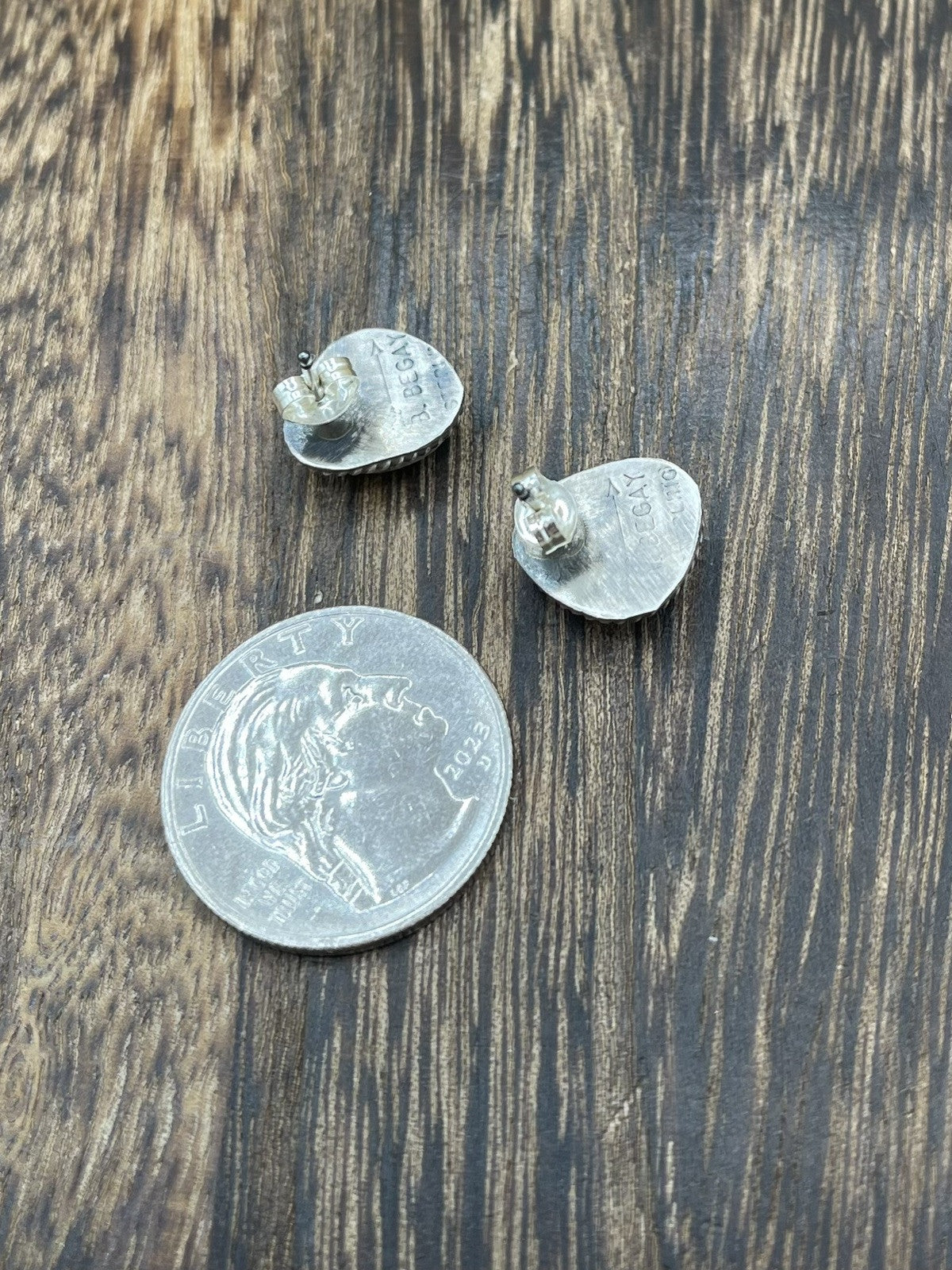 Navajo Handmade Sterling Silver Kingman Turquoise Post Stud Earrings Byron Begay
