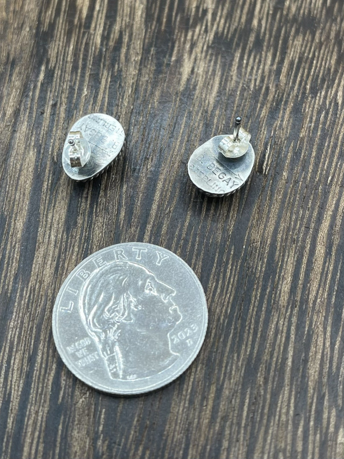 Navajo Handmade Sterling Silver Kingman Turquoise Post Stud Earrings Byron Begay